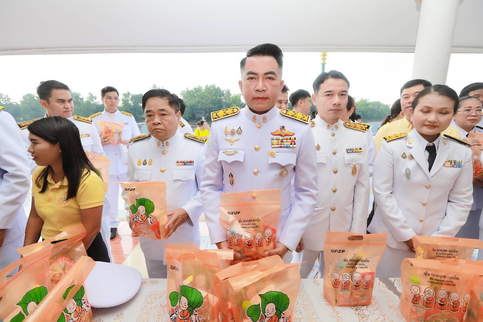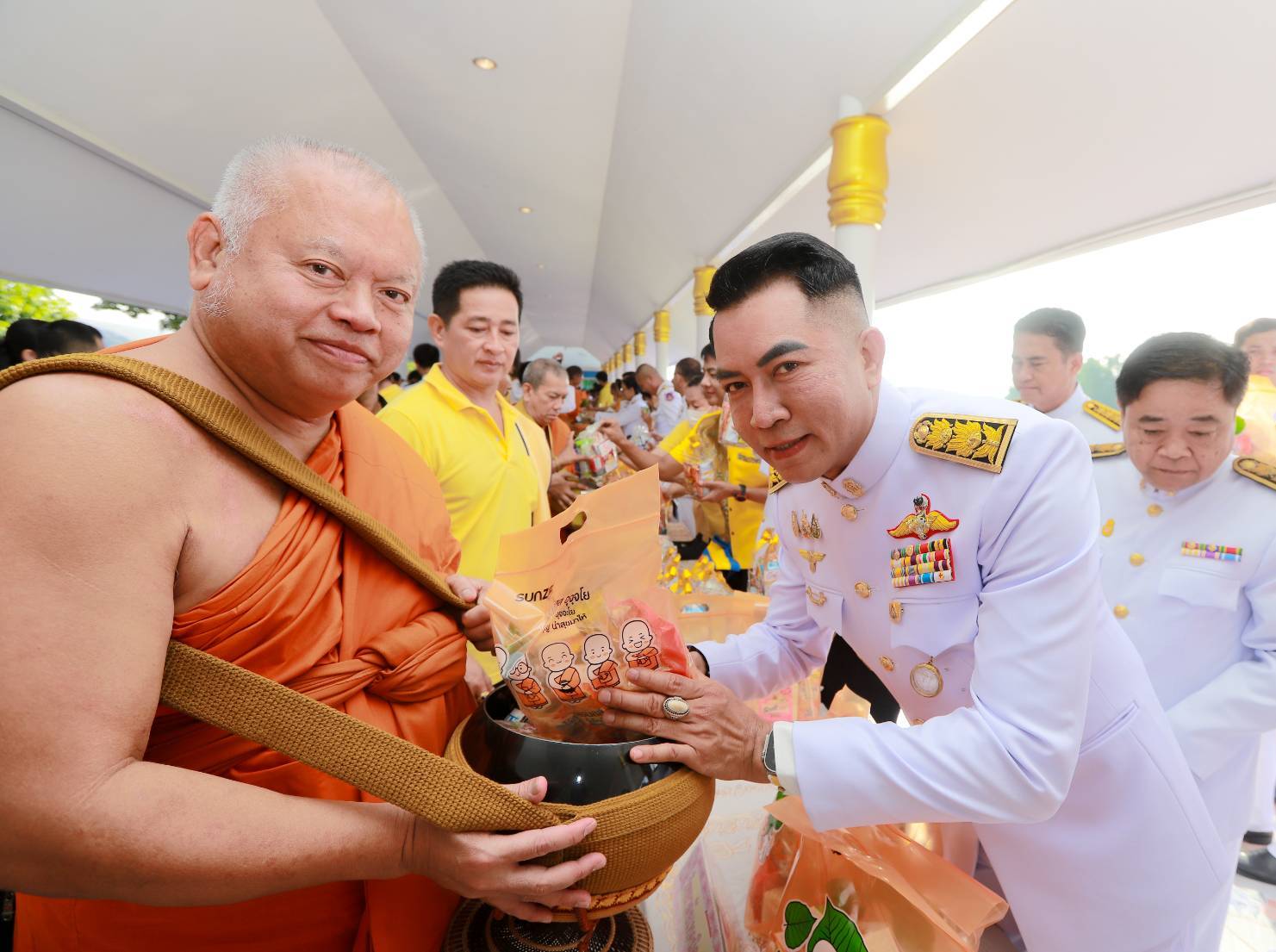 ร่วมพิธีทำบุญตักบาตรข้าวสารอาหารแห้งแด่พระสงฆ์เนื่องในวันคล้ายวันสวรรคต