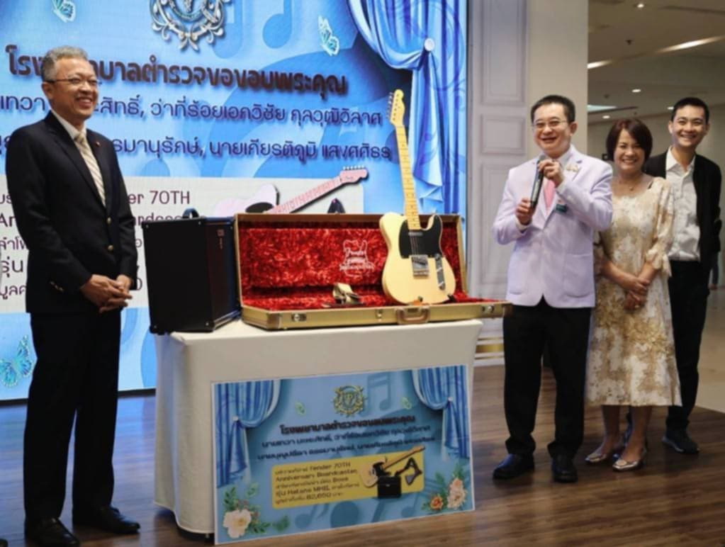ท่านเกียรติภูมิ แสงศศิธร ตุลาการศาลปกครองสูงสุด พร้อมด้วย คุณฉัตรภูมิ ว่องไว อดีตผู้เชี่ยวชาญประธานศาลรัฐธรรมนูญ ว่าที่ร้อยเอกวิชัย กุลวุฒิวิลาศ กรรมการ ผู้จัดการบริษัท สไมล์ภัณฑ์ จำกัด คุณ เทวา มะหะสิทธิ์ และคุณบุญปรีดา ธรรมานุรักษ์ ร่วมบริจาคเงินสนับสนุนซื้อเครื่องดนตรี นำมามอบให้โรงพยาบาลตำรวจ ประกอบไปด้วย กีตาร์ไฟฟ้า ยี่ห้อ Fender รุ่น 70th Broadcaster พร้อมกล่อง และอุปกรณ์ ราคา 68,000 บาท ซึ่งเป็น กีตาร์ที่เป็นที่นิยมเมื่อ 70 ปีที่แล้ว ลำโพงกีตาร์ไฟฟ้า ยี่ห้อ Boss รุ่น Katana MKii ราคา 14,400บาท ขาตั้งกีตาร์ 1 อัน ราคา 250บาท รวมมูลค่า 82,650 บาท ให้โรงพยาบาลตำรวจเพื่อส่งต่อให้ วงดนตรีจิตอาสา PGH BAND ของโรงพยาบาลตำรวจ