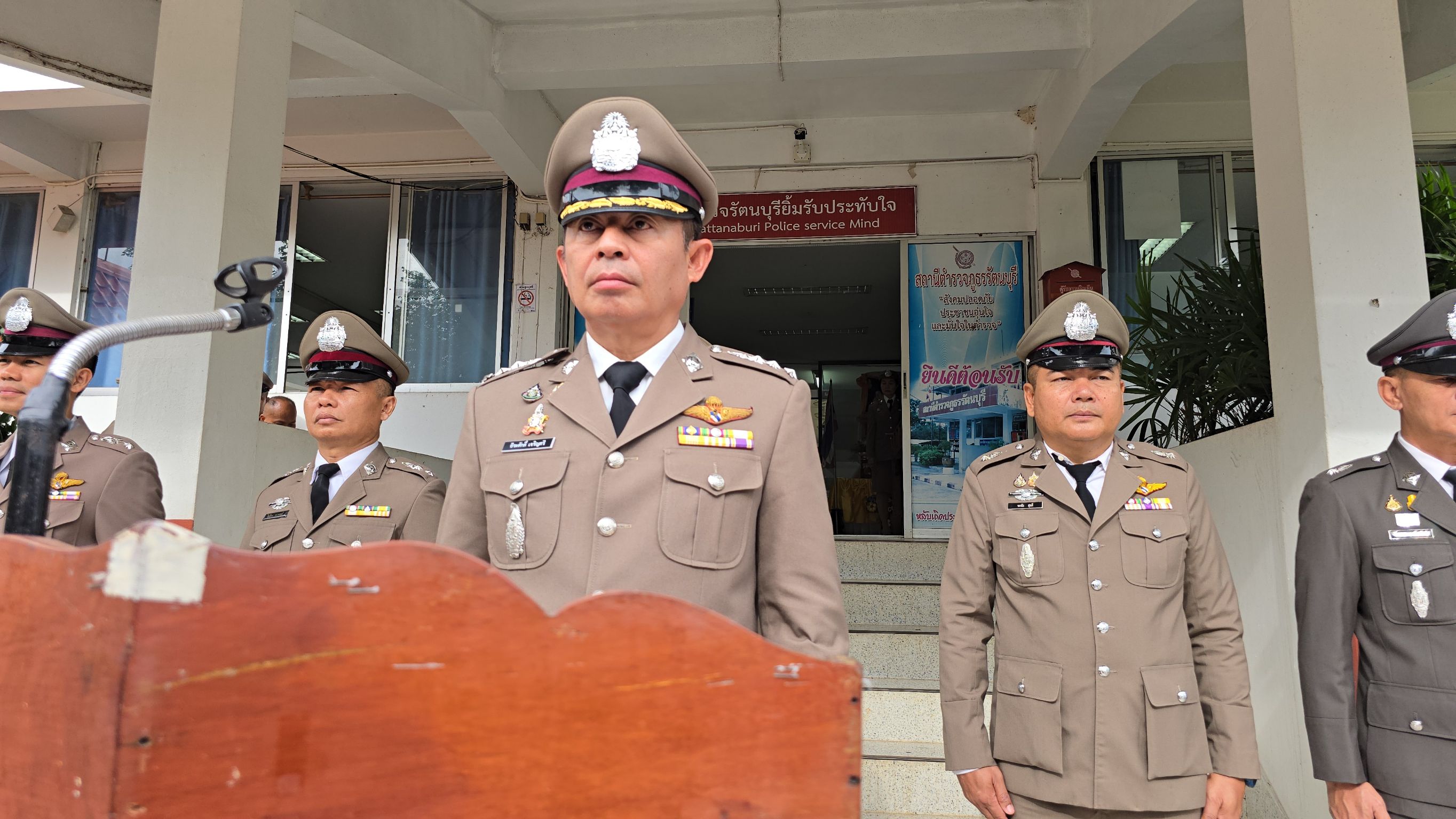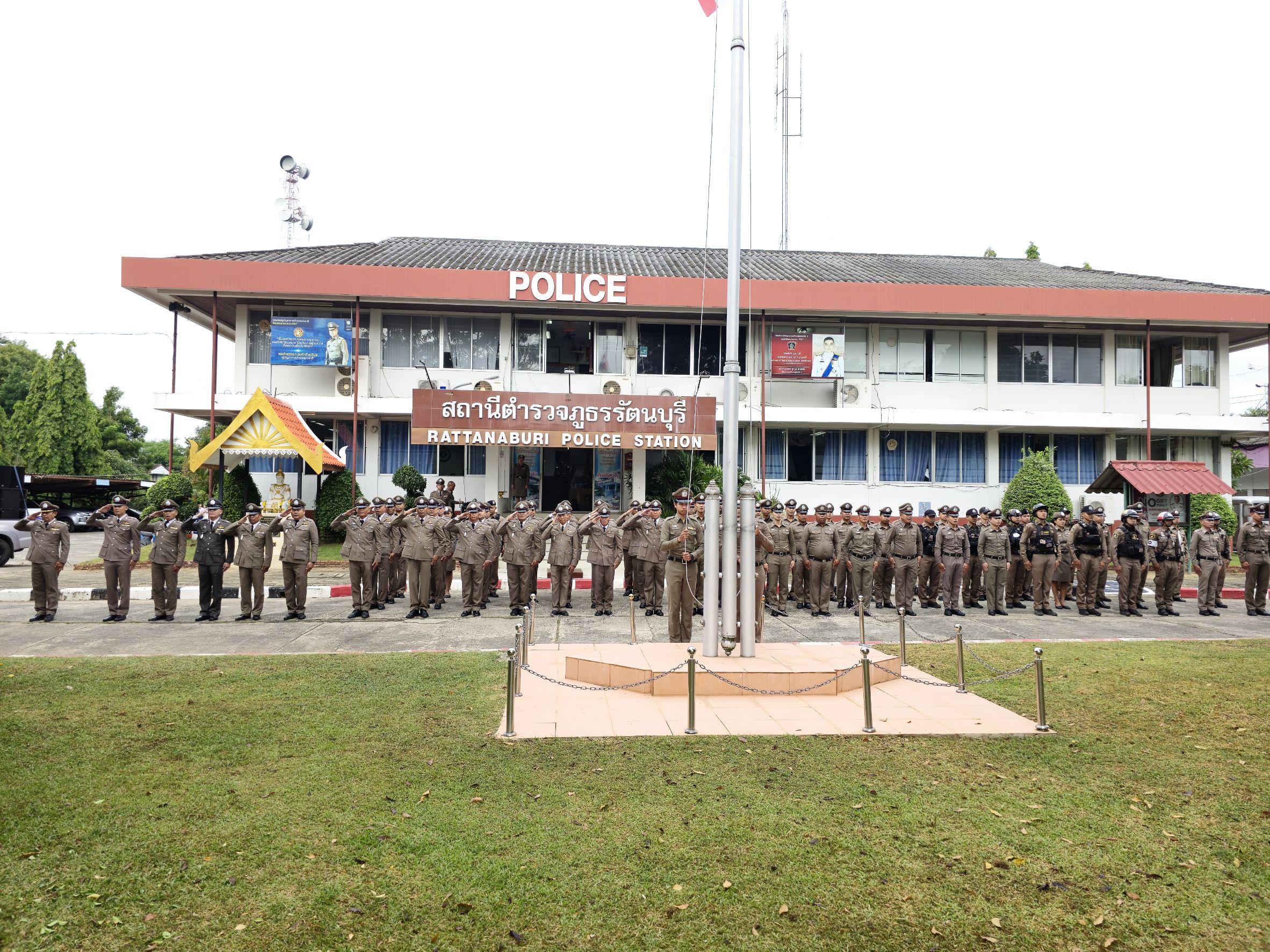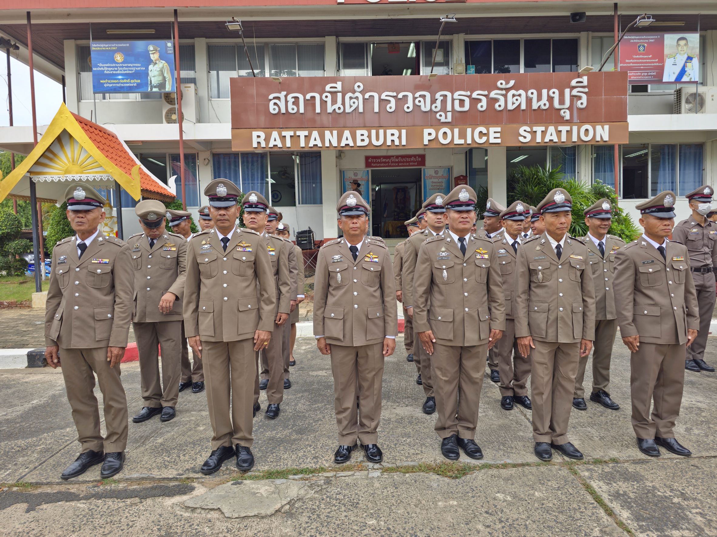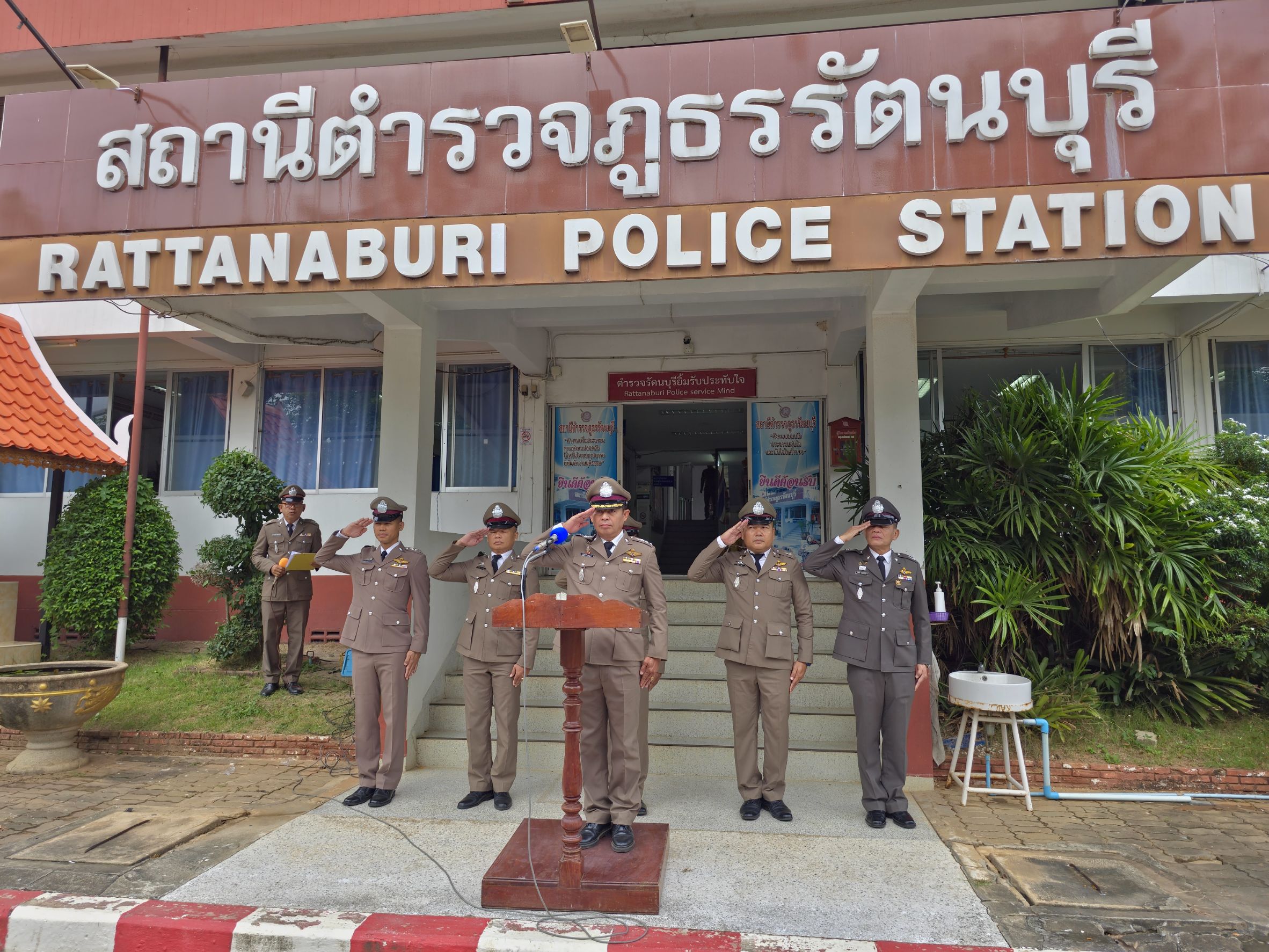 เมื่อเวลา 08.00 น. วันนี้ (17ต.ค. 2567) พ.ต.อ ธีระศักดิ์ เจริญศรี ผกก.สภ.รัตนบุรี จ.สุรินทร์ พ.ต.ท.เสฎฐพัชร จำนงประโคน รอง ผกก.(สอบสวน) พร้อมด้วยข้าราชการตำรวจ สภ.รัตนบุรี ทุกนาย ได้ร่วมกันจัดกิจกรรม เนื่องในวันคล้ายวันสถาปนาสำนักงานตำรวจแห่งชาติ 17 ตุลาคม 2567 โดยการเข้าแถวเคารพธงชาติ ที่หน้า สภ.รัตนบุรี จ.สุรินทร์ พร้อมกับได้กล่าวคำสัตย์ปฎิญาณ และอ่านสารจากผู้บัญชาการตำรวจแห่งชาติ จากนั้นรับฟังโอวาทจากผู้บังคับบัญชา พร้อมกันนี้ได้มีพิธีมอบใบประกาศเกียรติคุณแก่ข้าราชการตำรวจดีเด่น ผู้ช่วยเหลืองานตำรวจ และมอบรางวัลเรียงความดีเด่น แก่เด็กนักเรียนโรงเรียนบ้านหนองบัวบาน และโรงเรียนบ้านดินแดง เพื่อเป็นขวัญกำลังใจแก่คนทำความดีด้วย