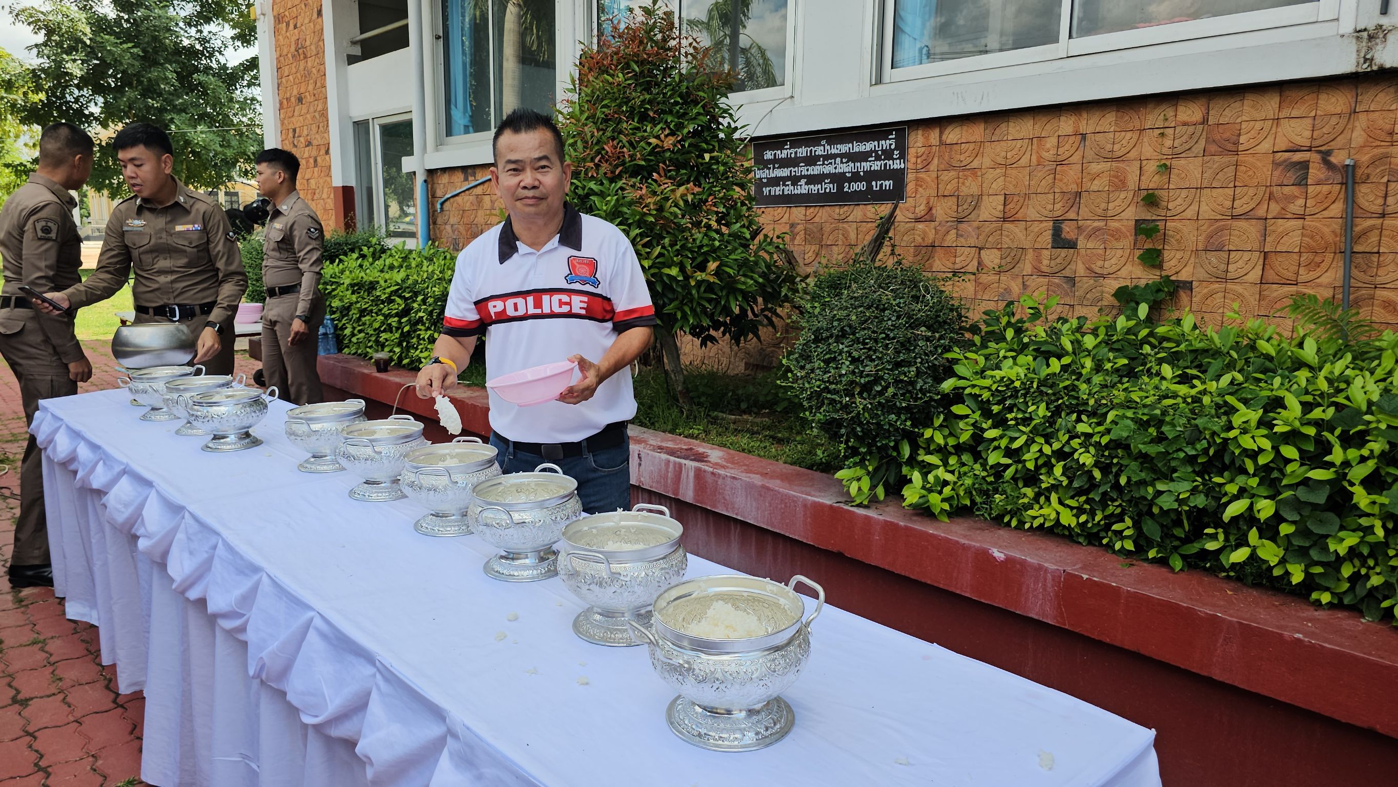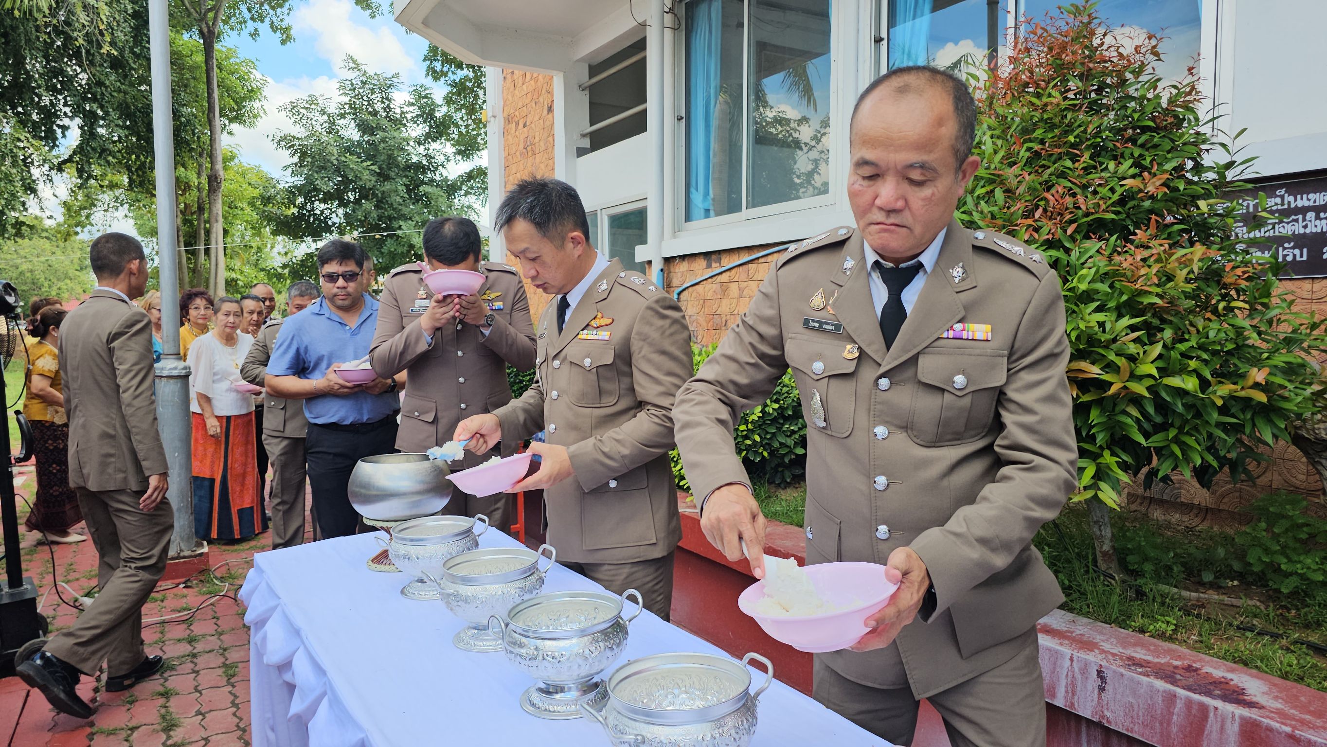 วันที่ 17 ต.ค. 2567 ผู้สื่อข่าวรายงาน พ.ต.อ.สราวุธ เอี่ยมสำอางค์ ผกก.สภ.เมืองสระแก้ว พร้อมด้วยข้าราชการตำรวจ และ คณะกรรมการตรวจสอบ ติดตามตามการบริหารงานตำรวจ (กต.ตร.) สภ.เมืองสระแก้ว ได้จัดพิธีทำบุญตักบาตร พระสงฆ์ เพื่อความเป็นสิริมงคล แก่ข้าราชการ ตำรวจ และอุทิศส่วนกุศลแก่ข้าราชการ ตำรวจ ที่เสียชีวิต เนื่องในวันคล้ายวันสถาปนา สำนักงานตำรวจแห่งชาติ ในพิธี มีพ่อค้าประชาชน รวมทั้งสื่อมวลชน ในพื้นที่เข้าร่วม นอกจากนั้น เจ้าหน้าที่ตำรวจ นำโดย ผู้กำกับ สภ.เมืองสระแก้ว ร่วมกันเคารพธงชาติ ด้วยความพร้อมเพียง และยังได้มอบใบประกาศเกียรติคุณ ให้ผู้สนับสนุน ที่ช่วยเหลือราชการตำรวจประจำปี 2567