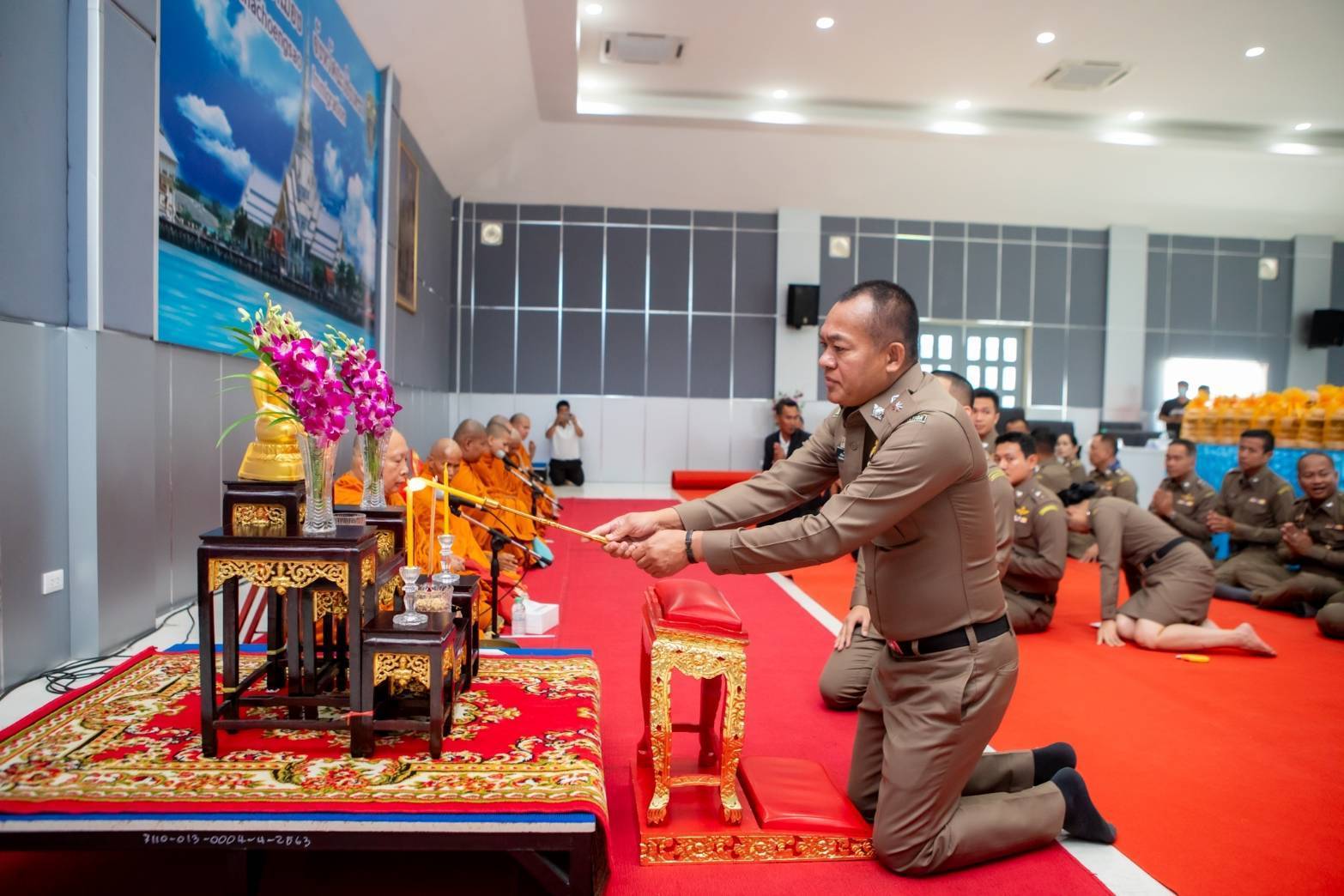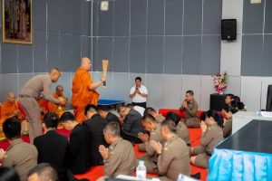 วันที่ 17 ตุลาคม 2567 พ.ต.อ.ธนิสร แสงท่านั่ง ผู้กำกับการสำนักงานตรวจคนเข้าเมืองจังหวัดฉะเชิงเทรา นายกฤษดา มหาวิริโยทัย ประธานฯกต.ตม.จังหวัดฉะเชิงเทราและคณะกต.ตม จังหวัดฉะเชิงเทราได้มีการนิมนต์พระสงฆ์ และได้รับความเมตตาจาก พระราชวชิรประชานาถ ศาสนวรกิจจาทรยติคณิสสร บวรสังฆารามคามวาสี เจ้าคณะจังหวัดฉะเชิงเทรา(ธรรมยุต)เจ้าอาวาสวัดสมานัตตนาราม ร่วมทำบุญตักบาตร อาหารแห้งเพื่อเป็นการอุทิศส่วนกุศลให้แก่ข้าราชการตำรวจผู้ล่วงลับ หลังจากนั้นร่วมฟังธรรมจากพระภิกษุสงฆ์ ให้ถือปัฏิบัติ ” ขยัน