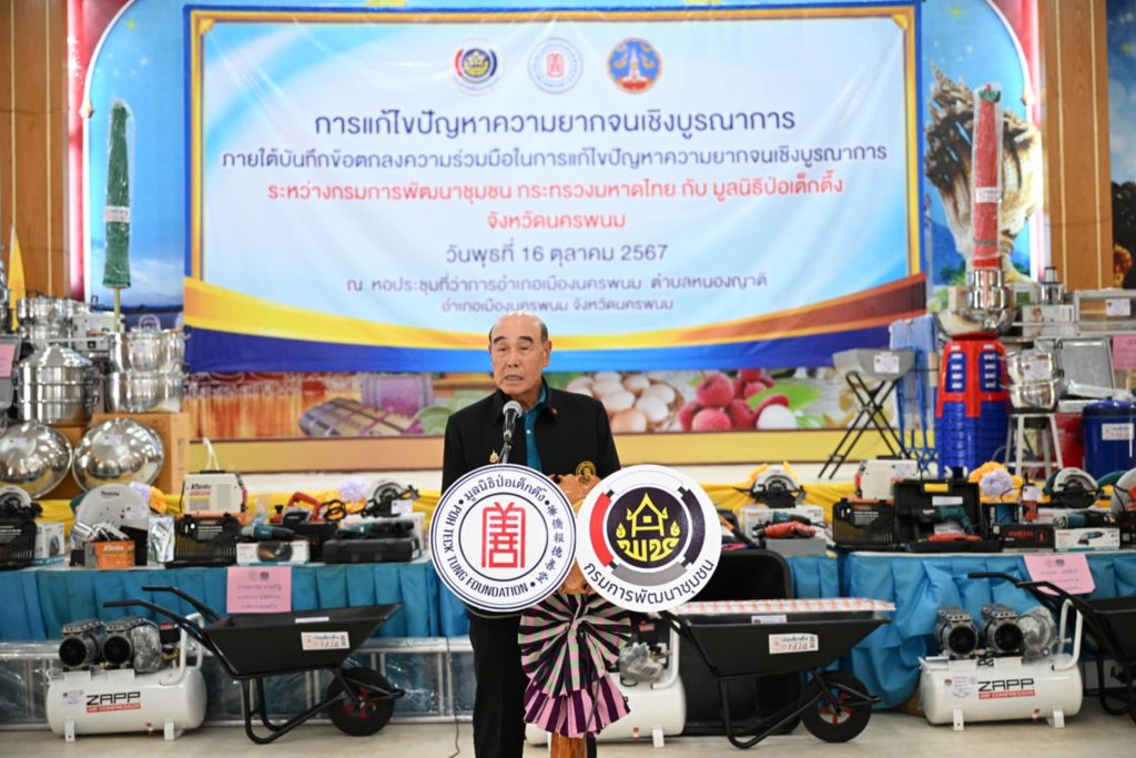 วันนี้ (วันพุธที่ 16 ตุลาคม พ.ศ. 2567) มูลนิธิป่อเต็กตึ๊ง นำโดย นายวิรุฬ เตชะไพบูลย์ ที่ปรึกษาประธานกรรมการ เป็นประธานในพิธี นายสุรพงษ์ เตชะหรูวิจิตร กรรมการและรองเลขาธิการ พร้อมด้วย นางสาวศุภรัตน์ สมบัติเจริญไทย หัวหน้าแผนกส่งเสริมการศึกษาและอาชีพ และนางสาวเนาวรัตน์ วรรณศิริ หัวหน้าแผนกหน่วยแพทย์สงเคราะห์ชุมชน ร่วมในพิธีมอบอุปกรณ์ประกอบอาชีพให้กับครัวเรือนยากจนในพื้นที่จังหวัดนครพนม (จังหวัดที่ 14 ของทางภาคตะวันออกเฉียงเหนือ) จำนวน 25 ครัวเรือน คิดเป็นมูลค่าทั้งสิ้น 612,689 บาท (หกแสนหนึ่งหมื่นสองพันหกร้อยแปดสิบเก้าบาทถ้วน) นอกจากนี้ มูลนิธิฯ ยังได้จัดหน่วยแพทย์สงเคราะห์ชุมชน นำทีมแพทย์อาสาฯ เจ้าหน้าที่หน่วยแพทย์ ทีมบรรเทาสาธารณภัย (กู้ชีพ) และอาสาสมัครลงพื้นที่ให้บริการประชาชนฟรี ประกอบด้วย บริการตรวจรักษาโรคทั่วไป จ่ายยา ทันตกรรม คัดกรองเบาหวาน กิจกรรมนันทนาการ ตรวจวัดสายตาพร้อมแจกแว่น บริการตัดผม ฯลฯ ให้แก่ประชาชนในพื้นที่ โดยมี นายวรวิทย์ พิมพนิตย์ ปลัดจังหวัดนครพนม นายสุรพล แก้วอินธิ ผู้ตรวจราชการกรมการพัฒนาชุมชนเป็นประธานร่วมในพิธี พร้อมด้วย คณะสมาคมพ่อค้าจังหวัดนครพนม เป็นผู้ประสานงานและร่วมในพิธี และอาสาสมัครศิลปินมูลนิธิป่อเต็กตึ๊ง นำโดย นายศรสุทธา กลั่นมาลี (ถั่วแระ เชิญยิ้ม) นายธนกฤต พรามเย็น (ศรีหลอด เชิญยิ้ม) ร่วมในพิธี และสร้างสีสันภายในงาน ณ บริเวณหอประชุมที่ว่าการอำเภอเมืองนครพนม อำเภอเมือง จังหวัดนครพนม