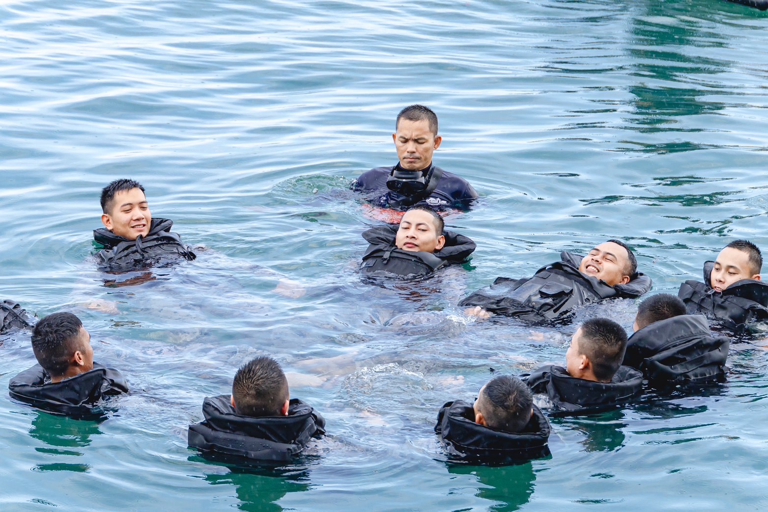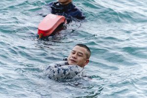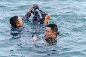 กองเรือปฏิบัติการ ทรภ.1 ร่วมชมรมกู้ภัยทางน้ำและทางทะเล ฝึกอบรมเอาชีวิตรอดในทะเลและนำกางเกงมาทำเป็นชูชีพ