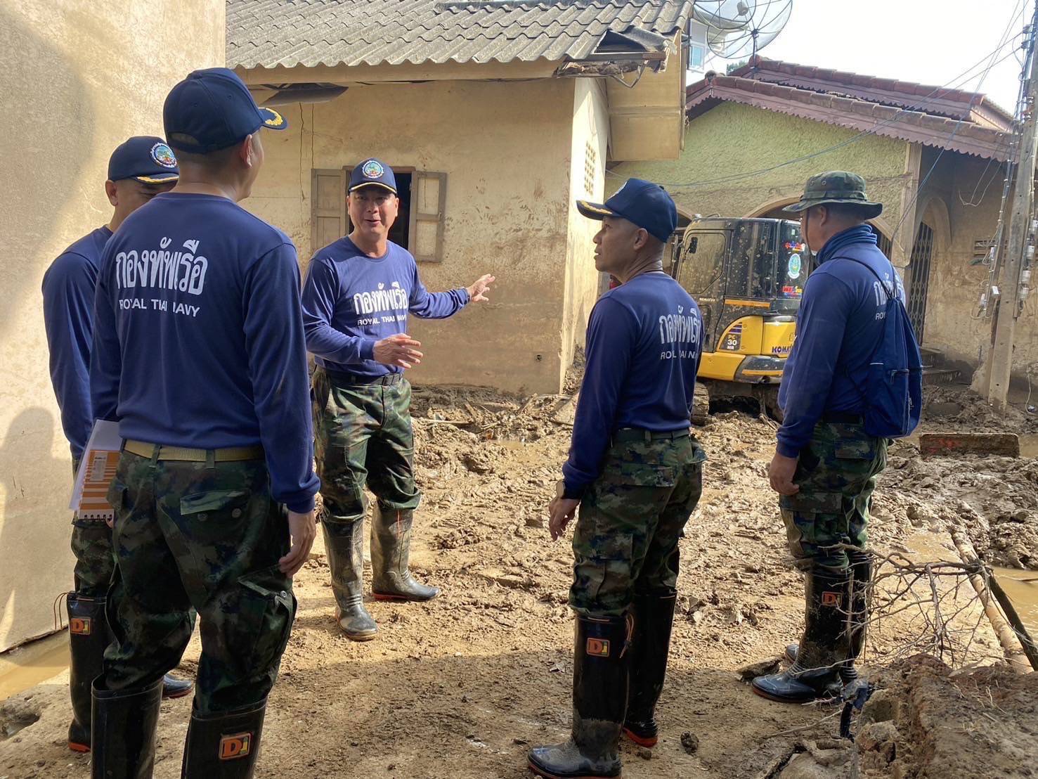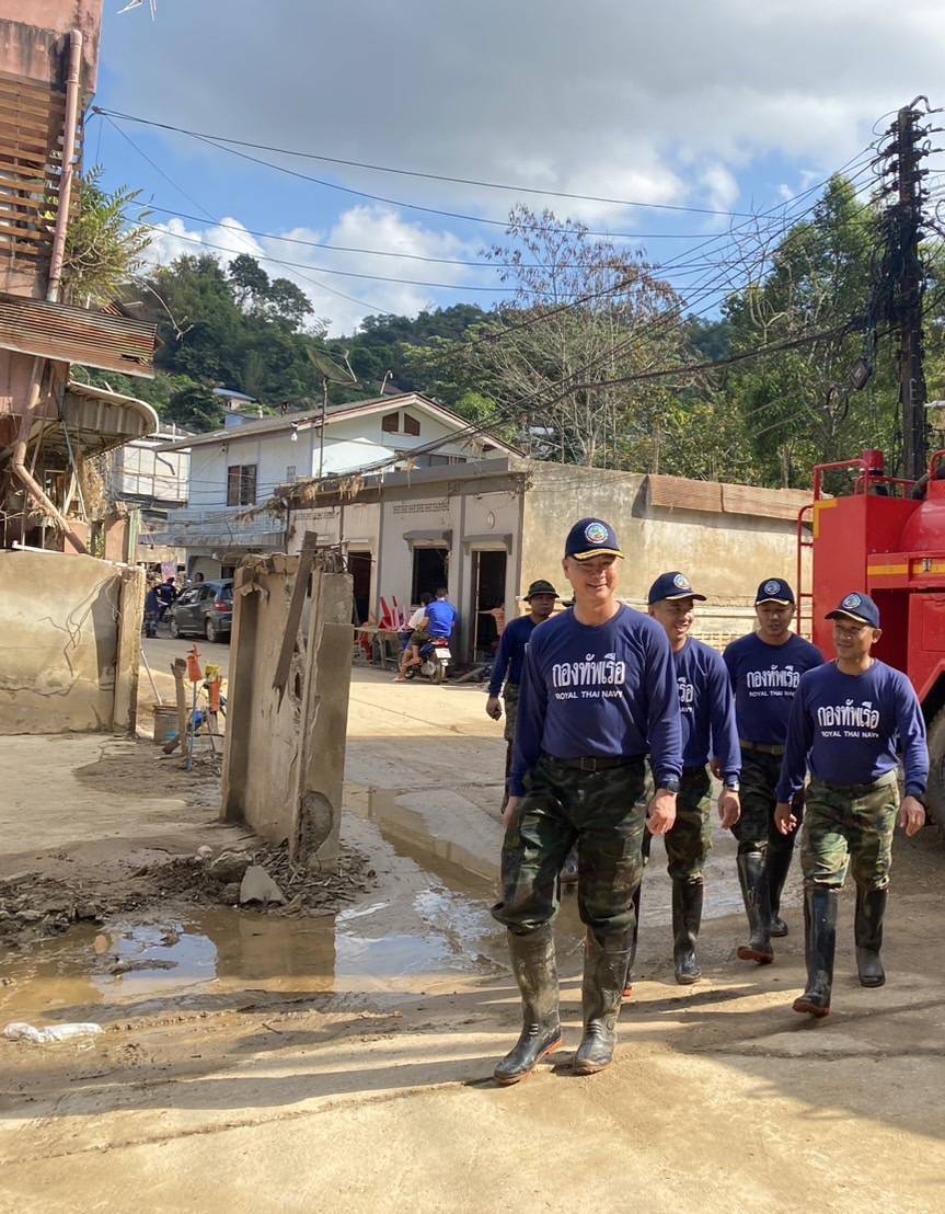 พลเรือตรี เอตม์ ยุวนางกูร ผู้บัญชาการหน่วยบัญชาการต่อสู้อากาศยานและรักษาฝั่ง (ผบ.สอ.รฝ.) เข้าพื้นที่ตรวจเยี่ยมชุดฟื้นฟู หน่วยบัญชาการต่อสู้อากาศยานและรักษาฝั่ง กองทัพเรือ ชุดที่ 4 ที่เดินทางมาถึง บริเวณซอยสายลมจอย อำเภอแม่สาย จังหวัดเชียงราย โดยมี นาวาเอก สกล กลิ่นคำหอม รองผู้บังคับการกรมสนับสนุน หน่วยบัญชาการต่อสู้อากาศยานและรักษาฝั่ง เป็นหัวหน้าชุด และมี นาวาโท ศิวชัย ใจสุทธิ์ ผู้บังคับกองพันขนส่ง กรมสนับสนุน หน่วยบัญชาการต่อสู้อากาศยานและรักษาฝั่ง เป็นรองหัวหน้าชุด พร้อมนำกำลังพลชุดฟื้นฟู เข้าสำรวจพื้นที่ในส่วนที่รับผิดชอบ และลงมือทำความสะอาดบ้านเรือนของประชาชนต่อไป