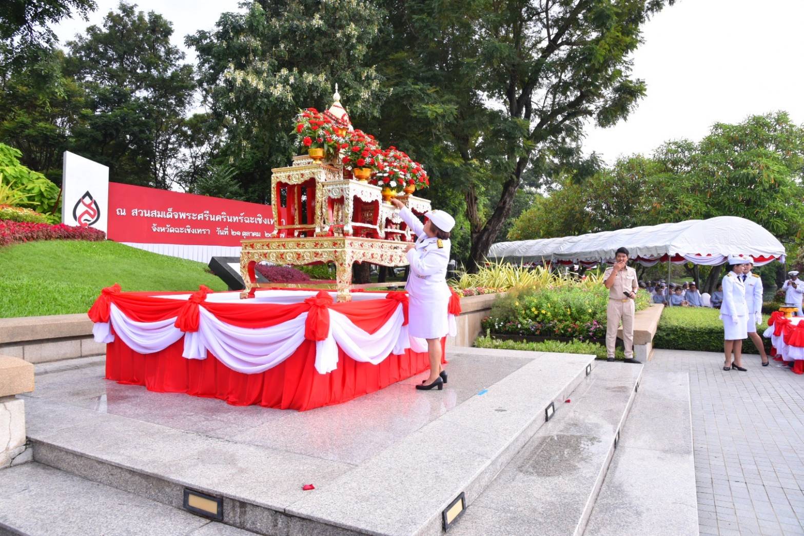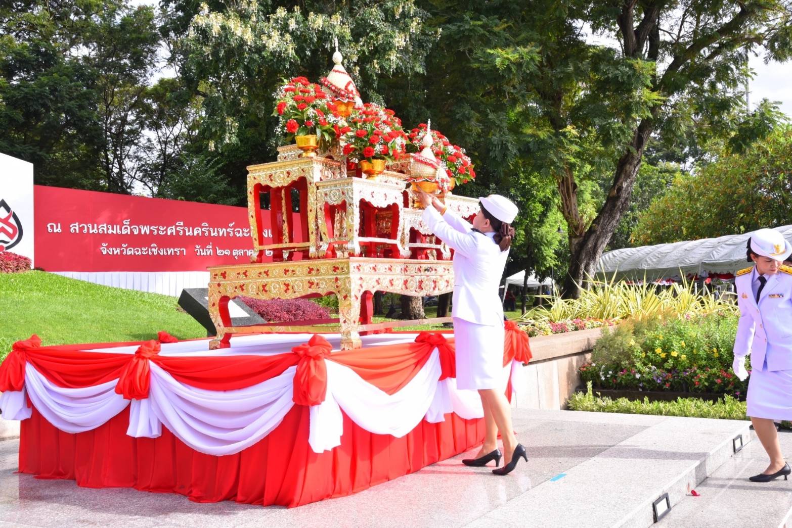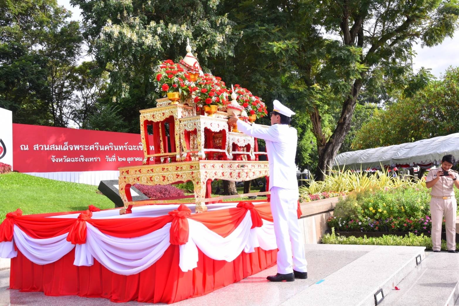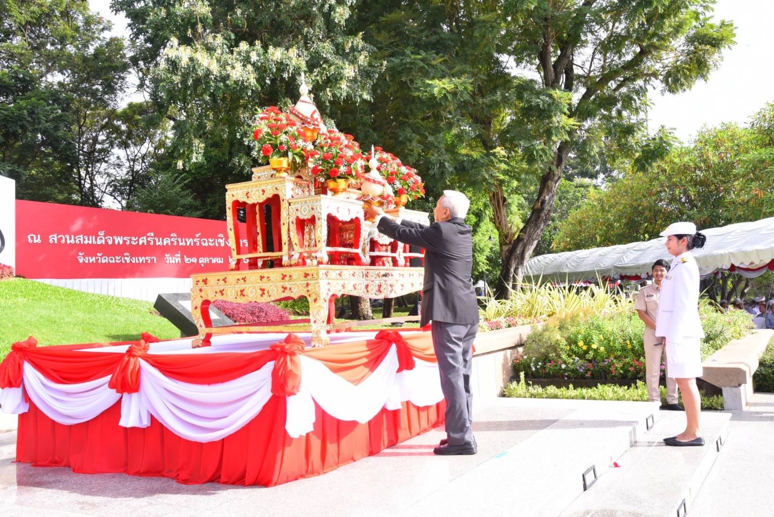 วันที่ 21 ตุลาคม 2567 เวลา 08.30 น. ที่ สวนสมเด็จพระศรีนครินทร์ฉะเชิงเทรา นางสาวฉัตรประอร นิยม รองผู้ว่าราชการจังหวัดฉะเชิงเทรา รักษาราชการแทนผู้ว่าราชการจังหวัดฉะเชิงเทรา เป็นประธานในพิธีน้อมรำลึก “สมเด็จย่า” เนื่องในวันคล้ายวันพระราชสมภพ สมเด็จพระศรีนครินทราบรมราชชนนี พร้อมด้วย นายเริงศักดิ์ มหาวินิจฉัยมนตรี เลขาธิการมูลนิธิฯ นายกลยุทธ ฉายแสง นายกเทศมนตรีเมืองฉะเชิงเทรา เหล่ากาชาดจังหวัด ข้าราชการ ศาล ทหาร ตำรวจ ร่วมวางพานพุ่มดอกไม้สดสักการะ เพื่อเทิดพระเกียรติพระองค์ท่านและน้อมรำลึกในพระมหากรุณาธิคุณ