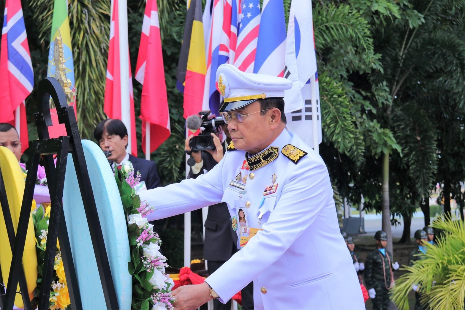 วันอังคารที่ 22 ตุลาคม 2567 เวลา 10.00 น. พระบาทสมเด็จพระเจ้าอยู่หัว ทรงพระกรุณาโปรดเกล้าฯ ให้ พลเอก ประยุทธ์ จันทร์โอชา องคมนตรี เป็นผู้แทนพระองค์วางพวงมาลาสมเด็จพระเจ้าอยู่หัวมหาวชิราลงกรณ บดินทรเทพยวรางกูร สมเด็จพระนางเจ้าสิริกิติ์ พระบรมราชินีนาถ พระบรมราชชนนีพันปีหลวง และสมเด็จพระนางเจ้าสุทิดา พัชรสุธาพิมลลักษณ พระบรมราชินี เนื่องในวันที่ระลึกทหารผ่านศึกเกาหลี ณ อนุสาวรีย์ทหารผ่านศึกเกาหลี ค่ายนวมินทราชินี กรมทหารราบที่ 21 รักษาพระองค์ฯ อำเภอเมืองชลบุรี จังหวัดชลบุรี ในการนี้ นายธวัชชัย ศรีทอง ผู้ว่าราชการจังหวัดชลบุรี พร้อมด้วยนายเอกราช สมัครไทย ผู้พิพากษาศาลจังหวัดชลบุรี
