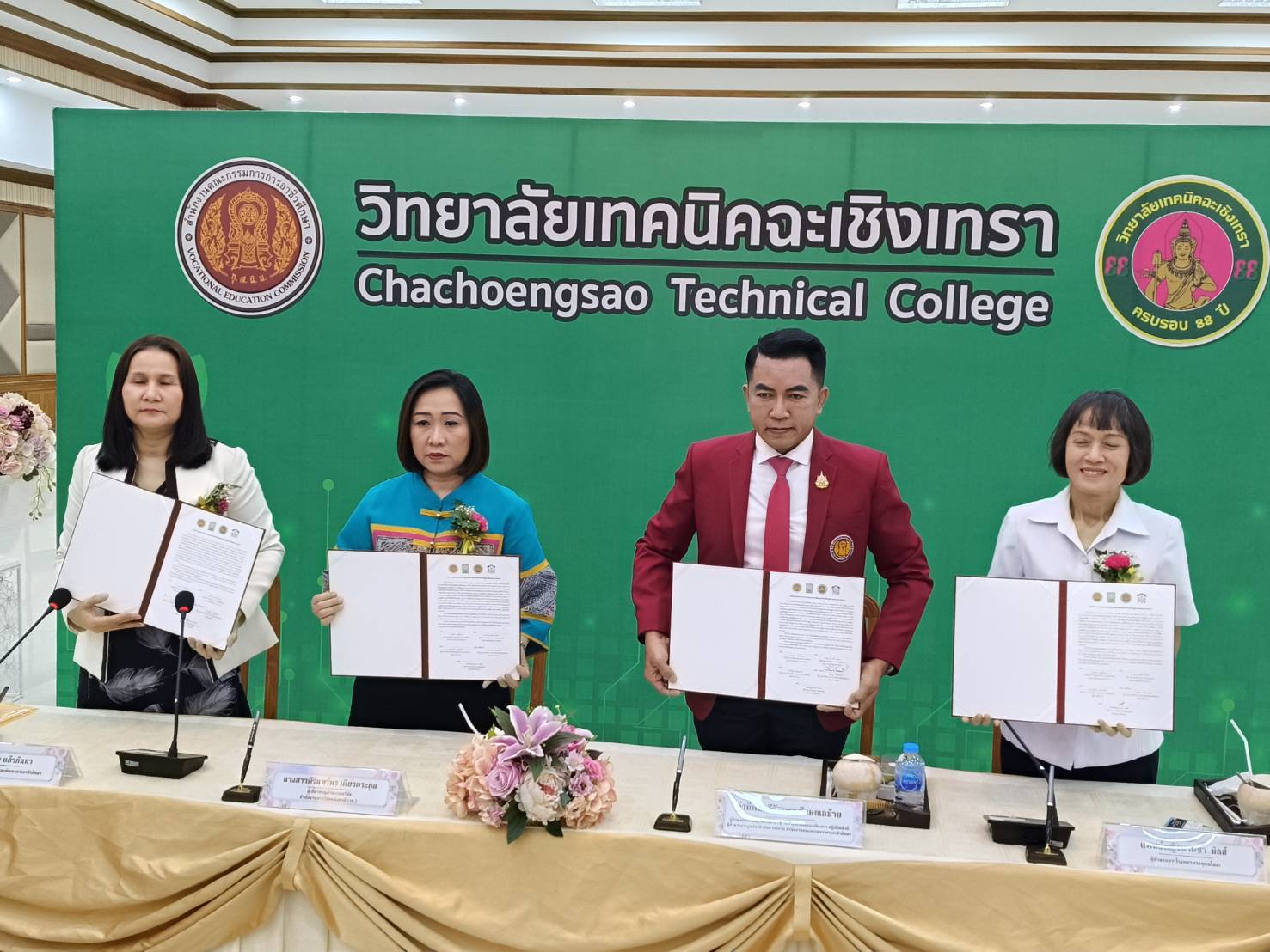 วันที่ 24 ตุลาคม 2567 ณ.ห้องประชุมวิทยาลัยเทคนิคฉะเชิงเทรา ว่าที่พันตรีวัชรพล ลักษณลม้าย ผู้อำนวยการวิทยฐานะเชี่ยวชาญ วิทยาลัยเทคนิคฉะเชิงเทรา ประธานในพิธี แพทย์หญิงนาตยา มิลส์ ผู้อำนวยการโรงพยาบาลพุทธโสธร นางมนทิรา แก้วกันหา รองผู้อำนวยการสำนักวิจัยและพัฒนาการอาชีวศึกษา นางสาวสิรินทร์พร เดียวตระกูล นักวิเคราะห์นโยบายและแผนเชี่ยวชาญ สำนักงานการวิจัยแห่งชาติ พร้อมคณะผู้บริหารวิทยาลัยเทคนิคฉะเชิงเทรา ร่วมดำเนินการส่งมอบโครงการส่งมอบหุ่นยนต์ช่วยฝึกเดินสำหรับฟื้นฟูผู้ป่วยอัมพฤกษ์อัมพาต เพื่อเพิ่มมูลค่าสิ่งประดิษฐ์สู่การใช้ประโยชน์ Co-tunding