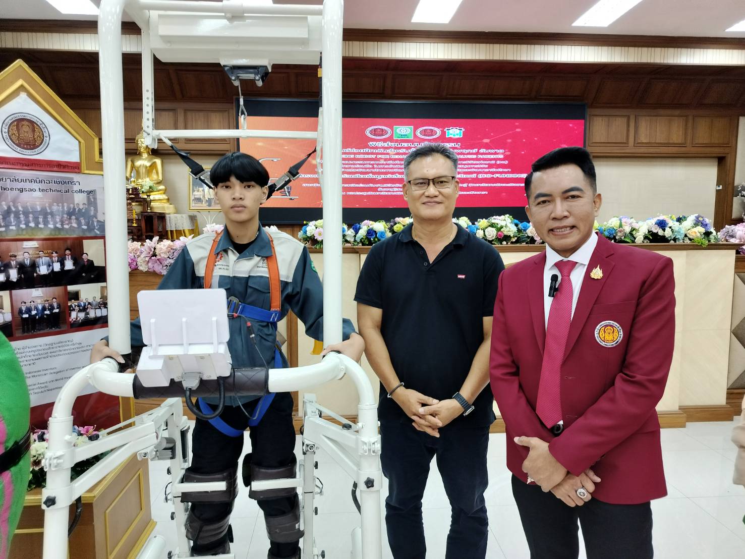 พิธีมอบนวัตกรรมผลงานหุ่นยนต์ช่วยฝึกเดินสำหรับฟื้นฟูผู้ป่วยอัมพฤกษ์อัมพาตภายใต้โครงการความร่วมมือเพื่อเพิ่มมูลค่าสิ่งประดิษฐ์สู่การใช้ประโยชน์ Co-tunding วิทยาลัยเทคนิคฉะเชิงเทรา