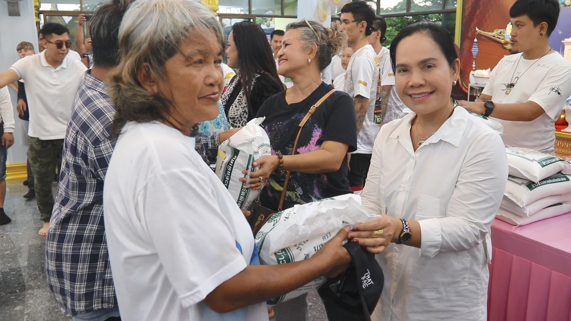 ที่ วัดสันติธาราวาส (ทุ่งละหาน) ต. ห้วยใหญ่ นางอำพร แก้วแสง ผู้ก่อตั้งเทวาลัยมหากาลีอวตารจักรวาลชนนี ประธานฝ่ายฆราวาส เป็นเจ้าภาพทำบุญบารมีทานแจกข้าวสาร ให้กับผู้ยากไร้ ในพื้นที่ ต.ห้วยใหญ่ รวม 1,000 กิโลกรัม โดยมีพันธมิตร อาทิ นางลิซ่า แฮมิลตัน นายกสมาคมผู้ประกอบการธุรกิจกลางคืนเมืองพัทยา , นางบุณรดา เศรษฐา ผู้บริหารร้านอาหาร Happy Hill เขาชีจรรย์, นายอัมพร แสงแก้ว นายกสมาคมนักข่าวพัทยา, นางรักพงษ์ สุทธิเดชานัย สมาชิกกิ่งกาชาดอำเภอบางละมุง ผู้มีจิตศรัทธา พนักงานในเครือ ร้านเดอะสโตนเฮาส์วอล์คกิ้งสตรีท ร้านกาลเวลา พัทยา และร้าน Leela club Pattaya ร่วมแจกข้าวสาร ซึ่งมีพระครูสังฆรักษ์ณัฐพนธ์ สิริปญฺโญ