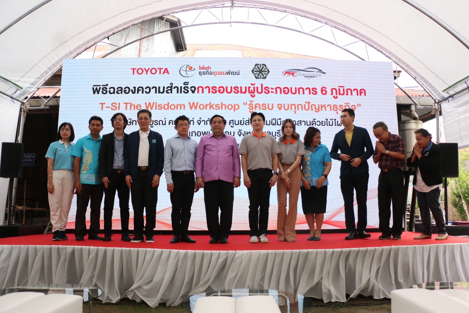 บริษัท โตโยต้า มอเตอร์ ประเทศไทย จำกัด สานต่อปณิธานส่งต่อความรู้ สู่ความยั่งยืน ภายใต้ “กิจกรรม TSI-The Wisdom Workshop รู้ครบ… จบทุกปัญหาธุรกิจ” ในกับประชาชนผู้ทำธุรกิจ SME ในท้องถิ่น ใน 6 ภูมิภาค ได้แก่ จังหวัดสระบุรี, ขอนแก่น, กาญจนบุรี, สงขลา, เชียงราย และครั้งนี้ ที่จังหวัดชลบุรี เพื่อรับฟังแนวทางการเรียนรู้ของระบบการผลิตแบบโตโยต้า (TPS) และหลักการไคเซ็น ให้สามารถนำไปเป็นแนวทางสำหรับประยุกต์แก้ไขปัญหา ปรับปรุงและพัฒนาธุรกิจของตนเองได้อย่างมีประสิทธิภาพ สู่การทำธุรกิจแบบมืออาชีพ ลดต้นทุน ลดความสูญเสีย และเพิ่มกำไรอย่างต่อเนื่อง เมื่อเวลา 13.00น. ของวันที่ 9 มิถุนายน 2566 ณ ศูนย์การเรียนรู้โตโยต้า ธุรกิจชุมชนพัฒน์ บริษัท บริบูรณ์ คราฟท์ จำกัด จังหวัดชลบุรี นายนันทวัฒน์ ศรีวรัตน์อัชกุล ผู้ช่วยกรรมการผู้จัดการใหญ่ บริษัท โตโยต้า มอเตอร์ ประเทศไทย จำกัด นายนิติ วิวัฒน์วานิช รองผู้ว่าจังหวัดชลบุรี นายเนติ มงคลจิตตานนท์ กรรมการ บริษัท ไทยยนต์ชลบุรี ผู้แทนจำหน่ายโตโยต้า จำกัด และนายคมกฤช บริบูรณ์ เจ้าของธุรกิจ บริษัท บริบูรณ์ คราฟท์ จำกัด ร่วมงานกิจกรรมครั้งที่ 6 ที่จังหวัดชลบุรี พร้อมฉลองความสำเร็จ “การอบรมผู้ประกอบการ 6 ภูมิภาค” T-SI The Wisdom Workshop รู้ครบ… จบทุกปัญหาธุรกิจ”
