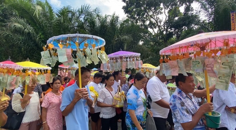ที่เป็นกิ่งไม้แล้วแบ็งค์นำเงินมาติด ส่วนอันนี้แปลกออกไปเนื่องจากใช้ร่มหลากสีแทนกิ่งไม้ เป็นพุ่มกฐิน และยังมีชาวมอญในพื้นที่ ร่วมแห่กฐินที่วัดห้วงน้ำเค็มวนาราม โดยแต่งตัวตามวัฒนธรรมของชาวมอญ มาร่วมขบวนแห่กฐิน พร้อมนำรถเปิดเพลงเร้าใจ สุดมันส์ซึ่งสร้างความสนุกสนาน ครื้นเครง อิ่มบุญ ในงานบุญกฐินที่แปลกใหม่ ในครั้งนี้ ยอดรวมกฐินทั้งหมดที่ ทางวัดห้วงน้ำเค็มวรารามนั้น ได้จำนวน 619,554 บาท