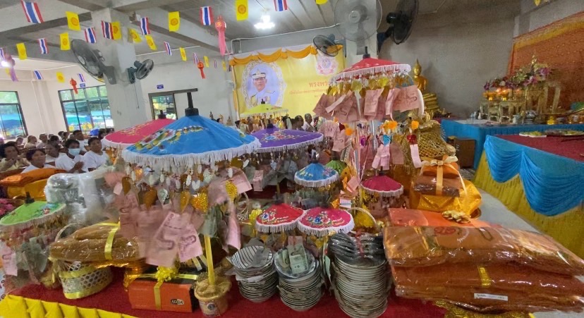 วันที่ 27 ตุลาคม 2567 ที่วัดห้วงน้ำเค็มวนาราม หมู่ที่ 8 ตำบลสนามไชย อำเภอนายายอาม จังหวัดจันทบุรี พระใบฎีกาลำแพ สัททาธิโก เจ้าอาวาสวัดห้วงน้ำเค็มวนาราม ไวยาวัจกร และกรรมการวัดฯ ผู้ใหญ่บ้านหมู่ที่ 8 พร้อมชาวบ้านในพื้นที่บ้านหว้งน้ำเค็มวนาราม ได้เป็นเจ้าบ้านต้อนรับ คณะพุ่มกฐินร่มหลากสี ที่นำไปแจกตามบ้านตามร้านค้าให้ช่วยกัน ติดเงินในพุ่มร่ม หลากสี จึงกลายเป็นสีสัน แปลก ในงานกฐินที่แตกต่างออกไปจากกฐินทั่วๆไป