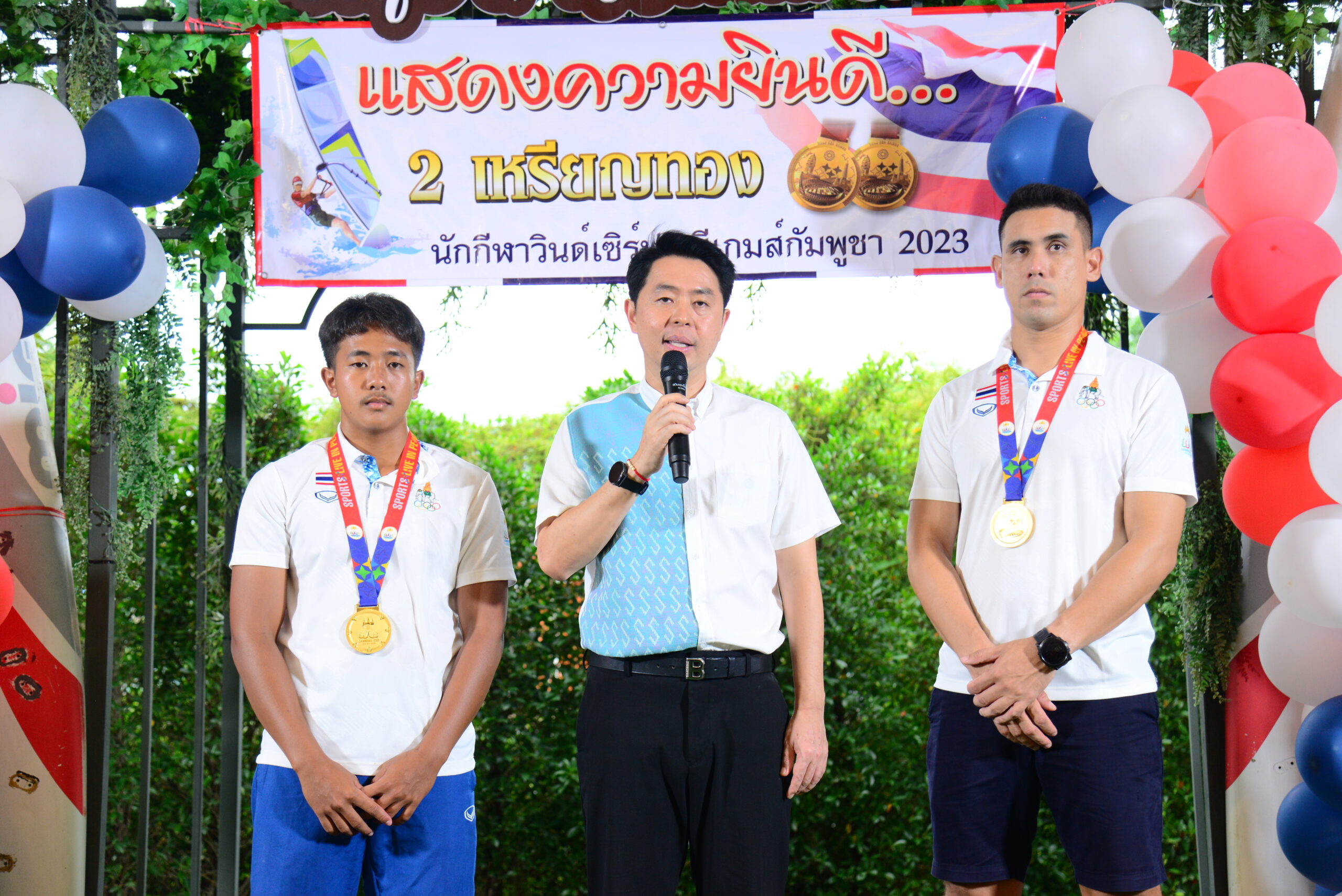 ในการแข่งขันกีฬาซีเกมส์ 2023 ประกอบด้วย 1. นายภาสพงษ์ เลี้ยงหล่ำ รุ่นไอคิวฟอยด์ เยาวชน อายุไม่เกิน 19 ปี และ 2.นายเอก บุญสวัสดิ์ รุ่นไอคิวฟอยด์ ชาย ที่สามารถฝ่าด่านกฎกติกาของเจ้าภาพจัดการแข่งขันมาให้ชาวไทยทุกคนได้ภาคภูมิใจในครั้งนี้ หลังเสร็จสินพิธีการทางสมาคมวินด์เซิร์ฟแห่งประเทศไทย ได้มอบเงินเพื่อเป็นขวัญกำลังใจให้กับ 2 นักกีฬา จำนวน 100,000 บาท ทั้งนี้ในงานได้จัดเลี้ยงอาหารให้แก่ผู้เข้าร่วมงาน พร้อมการแสดงดนตรีสร้างสีสัน ท่ามกลางบรรยากาศเป็นไปด้วยความอบอุ่น และเป็นกันเอง
