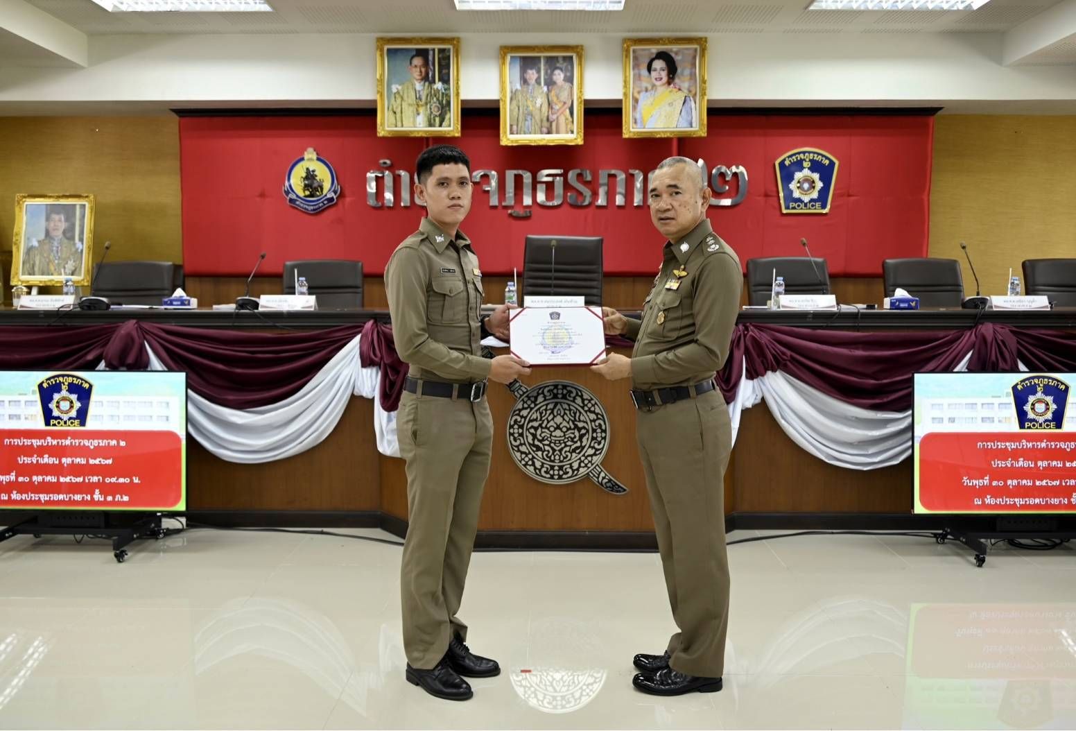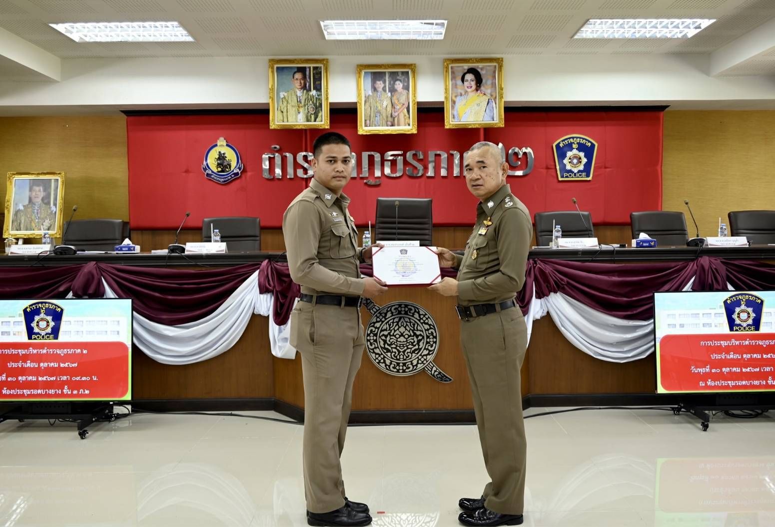 โดยท่านพลตำรวจโท สมประสงค์ เย็นท้วม ผู้บัญชาการ ตำรวจภูธรภาค 2 ประธานในพิธี มอบใบประกาศเกียรติคุณ ให้ข้าราชการตำรวจ ณ ห้องประชุมรอดบางยาง ชั้น 3 อาคาร ภาค 2 จังหวัดชลบุรี