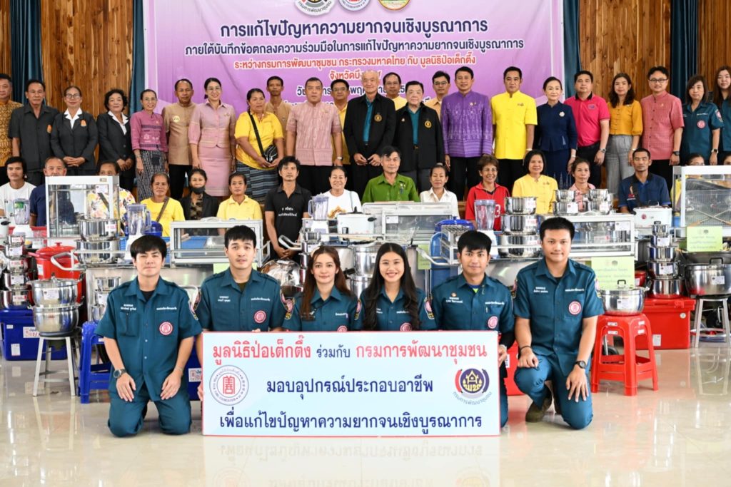 มูลนิธิป่อเต็กตึ๊ง สร้างชีวิต อย่างยั่งยืน มอบอุปกรณ์ประกอบอาชีพให้แก่ครัวเรือนยากจน มอบจักรยานให้แก่โรงเรียนในพื้นที่ชนบท และมอบรถเข็นวีลแชร์แก่ผู้พิการ ในพื้นที่จังหวัดบึงกาฬ