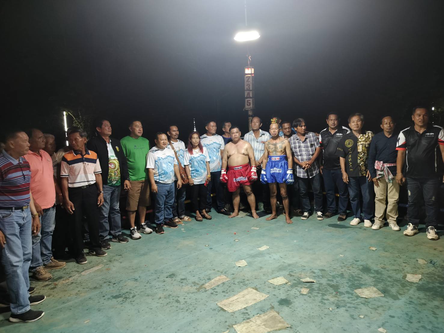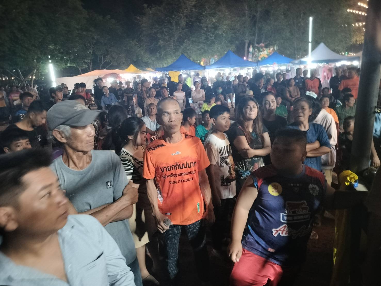 ณ เวทีมวยชั่วคราววัดหนองเสือตำบลเกาะขนุน พร้อมกระทบไหล่ดาราตลกดัง จ๊อด เชิญยิ้ม ปลาคราฟ เชิญยิ้ม และจุ๋ย แปดริ้ว ชมการแข่งขันชกมวยสมัครเล่นนักเรียน 24 คู่ (ทีมงาน ก.กัมปนาทและสถานศึกษาในเขต อบต.เกาะขนุน อำเภอพนมสารคาม จังหวัดฉะเชิงเทรา) ดนตรีย้อนยุค ภายในงานมีพ่อค้าแม่ค้ามาตั้งร้านขายของกันเป็นจำนวนมาก หลากสีสันด้วยรำวงย้อนยุค หนังกลางแปลง