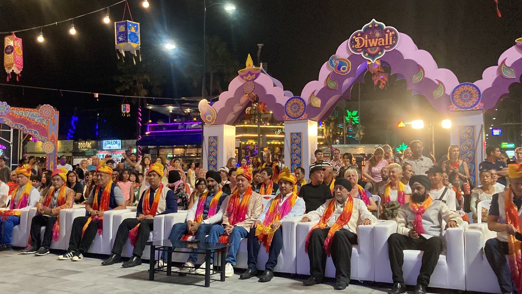 ในงานประธานในพิธีได้ร่วมสวดอาตีขอพรสิ่งศักดิ์สิทธิ์ ก่อนจะขึ้นเวทีกล่าวเปิดงาน DIWALI Festival Pattaya 2024 อย่างเป็นทางการ โดยมี นายสกล ผลลูกอินทร์ นายนคร ผลลูกอินทร์ สมาชิก อบจ.ชลบุรี นายชัยวัฒน์ ตามไท ผู้อำนวยการ ททท.พัทยา นายสุขราช กาลรา นายกสมาคมนักธุรกิจไทย-อินเดีย (พัทยา) นายดิโอ้ ซิงห์ นายกสมาคมอินเดียชลบุรี และสมาคมอินเดียพัทยา ร่วมจุดเทียนชัยแห่งแสงสว่าง