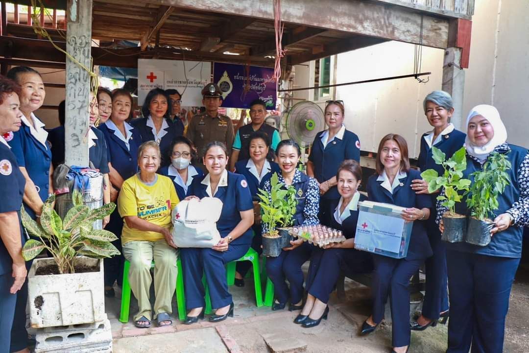 2. นางจันทรา ระวิวรรณ ณ บ้านเลขที่ 33/2 หมู่ที่ 6 ตำบลหนองปรือ อำเภอบางละมุง จังหวัดชลบุรีในโอกาสนี้ผู้ว่าราชการจังหวัดชลบุรีและนายกเหล่ากาชาดจังหวัดชลบุรีประธานชมรมแม่บ้านมหาดไทยจังหวัดชลบุรี ได้มอบพระบรมฉายาลักษณ์พระบาทสมเด็จพระเจ้าอยู่หัว และสมเด็จพระนางเจ้าฯ พระบรมราชินี ให้แก่ผู้ที่ได้รับมอบบ้านกาชาดรวมใจฯ ไว้เพื่อเคารพสักการะเป็นที่ยึดเหนี่ยวจิตใจ แสดงความจงรักภักดีและน้อมสำนึกในพระมหากรุณาธิคุณต่อสถาบันพระมหากษัตริย์ ทั้งนี้ ชมรมแม่บ้านมหาดไทยจังหวัดชลบุรี ได้มอบสิ่งของอุปโภคบริโภค กล้าพันธุ์ผักสวนครัว และอาหารสัตว์ พร้อมถังขยะลดโลกร้อน ไว้ให้แก่ผู้รับมอบบ้านกาชาดรวมใจฯ ภายใต้โครงการ”บ้านนี้มีรัก ปลูกผักกินเอง” และ “ทางนี้มีผล ผู้คนรักกัน” เพื่อเป็นการขับเคลื่อนการน้อมนำแนวพระราชดำริของสมเด็จพระกนิษฐาธิราชเจ้า กรมสมเด็จพระเทพรัตนราชสุดาฯสยามบรมราชกุมารี เพื่อเป็นการสนับสนุนและลดค่าใช้จ่ายในครัวเรือน พร้อมยกระดับคุณภาพชีวิตและสร้างความมั่นคงทางอาหารให้เกิดความต่อเนื่องอย่างยั่งยืน