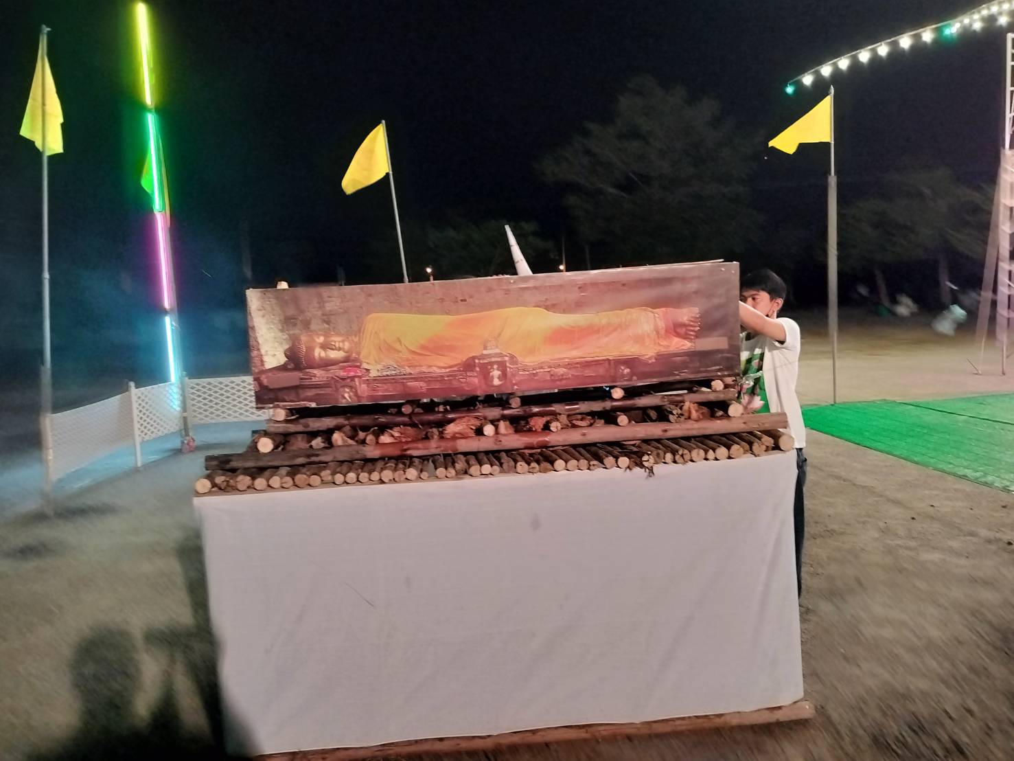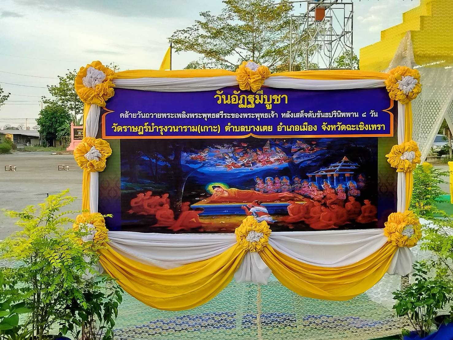 วัดราษฏร์บำรุงวนาราม (เกาะ) ต.บางเตย อ.เมือง จังหวัด ฉะเชิงเทรา เป็นวันคล้ายวันถวายพระเพลิงพระพุทธสรีระ ขององค์พระสัมมาสัมพุทธเจ้าในวันแรม 8ค่ำ เดือน วิสาขะ ทางวัดราษฏร์บำรุงวนาราม (เกาะ) จังหวัด ฉะเชิงเทรา นำโดยหลวงพ่อ พระครูถาวรพัฒนาคุณ เจ้าอาวาสวัด ราษฏร์บำรุงวนาราม (เกาะ) ได้จัดให้มีพิธีถวายพระเพลิงพระพุทธสรีระจำลองได้มีการจัดต่อเนื่องเป็นประจำทุกปี และในปีนี้เป็น ปีที่ 61 โดยมีญาติโยมชาววัดเกาะและใกล้เคียงเข้าร่วมพิธีเป็นจำนวนมาก โดยชาววัดเกาะจะนิยมเรียกว่า (วันเผาพระพุทธเจ้า) ในส่วนกิจกรรม วัดราษฏร์บำรุงวนาราม (เกาะ) จัดให้มีการสวดพระอภิธรรม ถวายเป็นพุทธบูชา ตั้งแต่ แรม 1 ค่ำ -แรม 7 ค่ำ และวันแรม 8 ค่ำมีพิธี แสดงพระธรรม เทศนา (เรื่องวันอัฏฐมีบูชา) – มาติกา และอัญเชิญพระพุทธสรีระจำลอง เวียรรอบพระอุโบสถ 3 รอบ