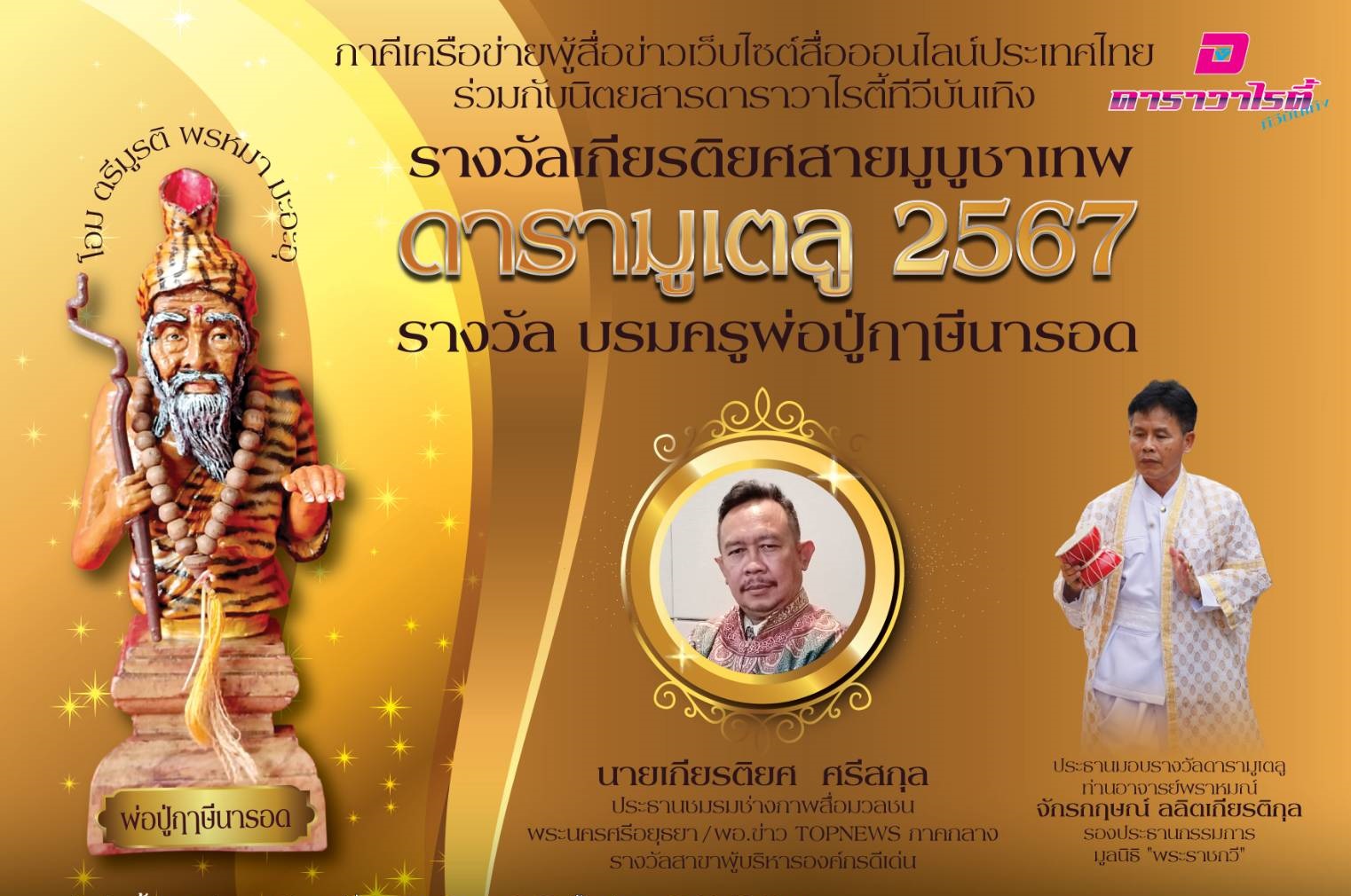 ผู้สื่อข่าวรายงานมาว่า ณ ห้องประชุม 1 สมเด็จพระมหาวีรวงศ์ อาคารสถานพุทธวิชชาลัย มหาวิทยาลัยราชภัฏพระนคร ถนนแจ้งวัฒนะ แขวงอนุสาวรีย์ เขตบางเขน กรุงเทพมหานคร นายจำลอง หรือ กู้ท่าน้ำนนท์ ประธานจัดงานดาวดารามูเตลู award ครั้งที่ 1/2567 รางวัลบรมครูพ่อปูฤาษีนารอด โดยมีอาจารย์พราหมณ์จักรกฤษณ์ ลลิตเกียรติกุล รองประธานกรรมการมูลนิธิ “พราหมณ์ราชเทวี” เป็นประธานมอบรางวัล ดร.สมมารถ พึ่งจันทึก ประธานที่ปรึกษาคณะกรรมการจัดงานและกรรมการจัดงาน, คุณจินตนา เมธากิตติพร ประธานคัดสรรศิลปินดารา นักร้อง นักแสดงฯ ประธานที่ปรึกษาประธานจัดงาน,นายศักดา ทองพูล ออกแบบ กราฟิกดีไซน์ คณะกรรมการจัดงาน,ดร.รัชดาภรณ์ เกตุเทศ ประธานที่ปรึกษาคณะกรรมการจัดงานกิตติมศักดิ์และคณะกรรมการจัดงาน วัตถุประสงค์เพื่อเป็นการระลึกนึกถึงคุณครูบาอาจารย์ ยกย่อง เชิดชูบุคคลที่เป็นคนดีมีความสามารถ บำเพ็ญประโยชน์เพื่อสังคมและประเทศชาติ โดยได้รับเกียรติจาก รองศาสตราจารย์ ดร. เปรื่อง กิจรัตน์ภร อธิการบดีมหาวิทยาลัยราชภัฏพระนคร ขึ้นรับมอบรางวัลในสาขา ปูชนียบุคคลกิตติมศักดิ์ ผู้ทำคุณประโยชน์ต่อการศึกษา สังคม และประเทศชาติ มีดร.ชาญณรงค์ นักเรียงให้เกียรติร่วมเป็นกำลังใจให้ เมื่อวันที่ 17 พฤศจิกายน 2567 ที่ผ่านมา
