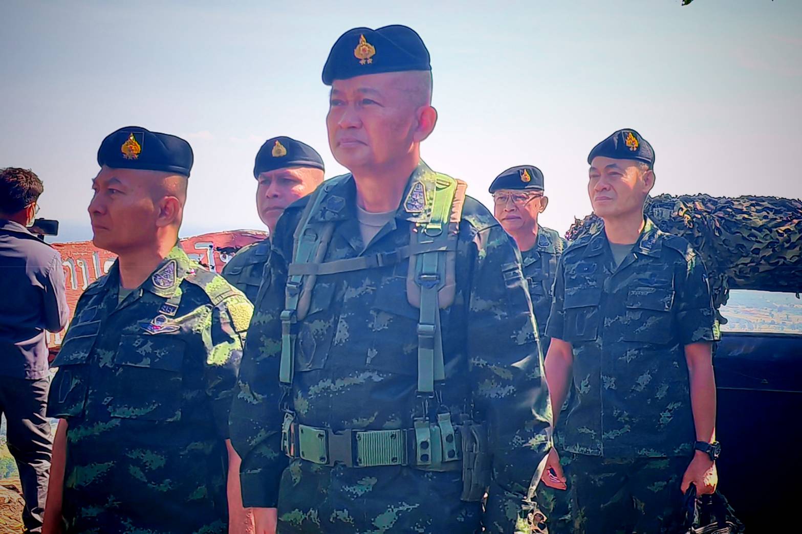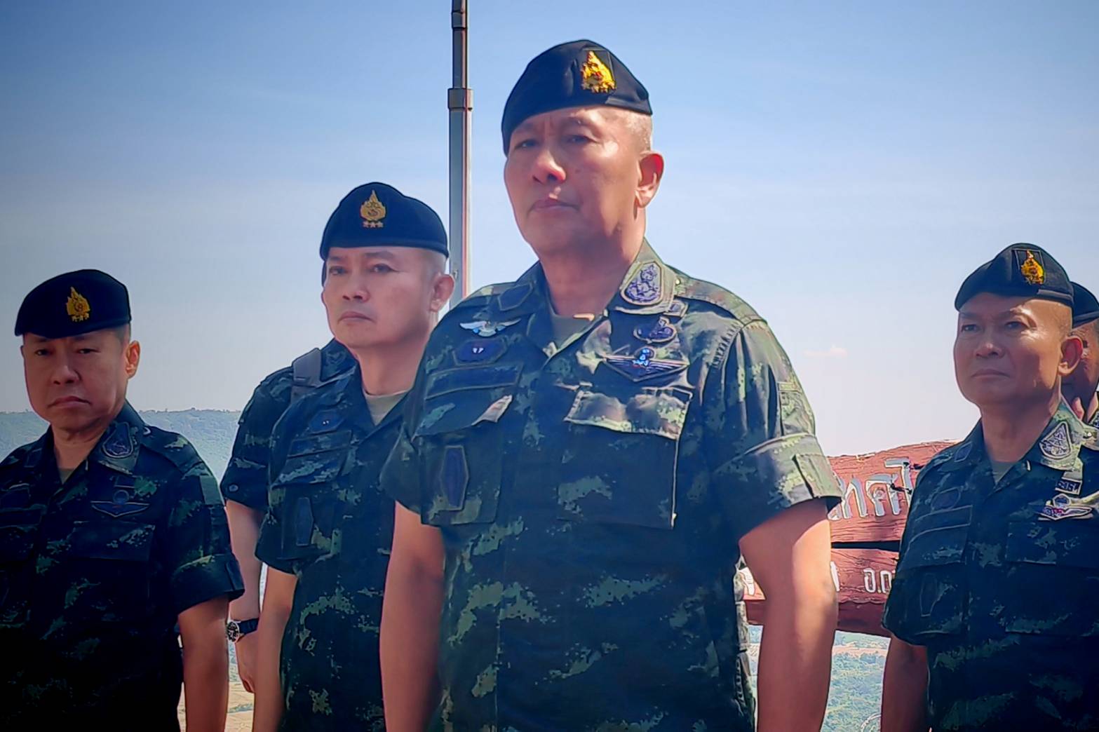 วันที่ 29 พ.ย. 2567 พลเอก พนา แคล้วปลอดทุกข์ ผู้บัญชาการทหารบก เดินทางโดย เฮลิคอปเตอร์กองทัพบกไปยัง สนามอฮ ศูนย์พัฒนาพื้นที่ชายแดน อำเภอกาบเชิง จังหวัดสุรินทร์ จากนั้นคณะ เดินทางโดยรถยนต์ ไปยังจุดตรวจการณ์ช่องปลดต่าง ตำบลกาบเชิง อำเภอกาบเชิง จังหวัดสุรินทร์ เพื่อตรวจภูมิประเทศ และตรวจเยี่ยมให้กำลังใจกำลังพลกองทัพบก ที่ปฏิบัติหน้าที่รักษาอธิปไตยในพื้นที่แนวชายแดนไทย-กัมพูชา พร้อมประชุมติดตามผลการปฏิบัติงานของหน่วยในพื้นที่ ตลอดจนรับทราบปัญหา ข้อขัดข้อง และข้อเสนอแนะ รวมถึงมอบนโนบายข้อกำชับการปฏิบัติงานแก่กำลังพลให้มีประสิทธิภาพยิ่งขึ้น โดยมี พลโทบุญสิน พาดกลาง แม่ทัพภาคที่ 2 พลตรี สมภพ ภาระเวช ผู้บัญชาการกองกำลังสุรนารี และผู้บังคับหน่วยทหารในพื้นที่ให้การต้อนรับ โดยมี พันเอกภาคภูมิ นภากาศ ผู้บังคับหน่วยเฉพาะกิจที่สอง กองกำลังสุรนารี และพันเอกกิตติศักดิ์ บังพิมาย ผู้บังคับหน่วยเฉพาะกิจกรมทหารพรานที่ 26 กองกำลังสุรนารี ได้กล่าวบรรยายสรุป ถึงผลการดำเนินงานในห้วงที่ผ่านมา