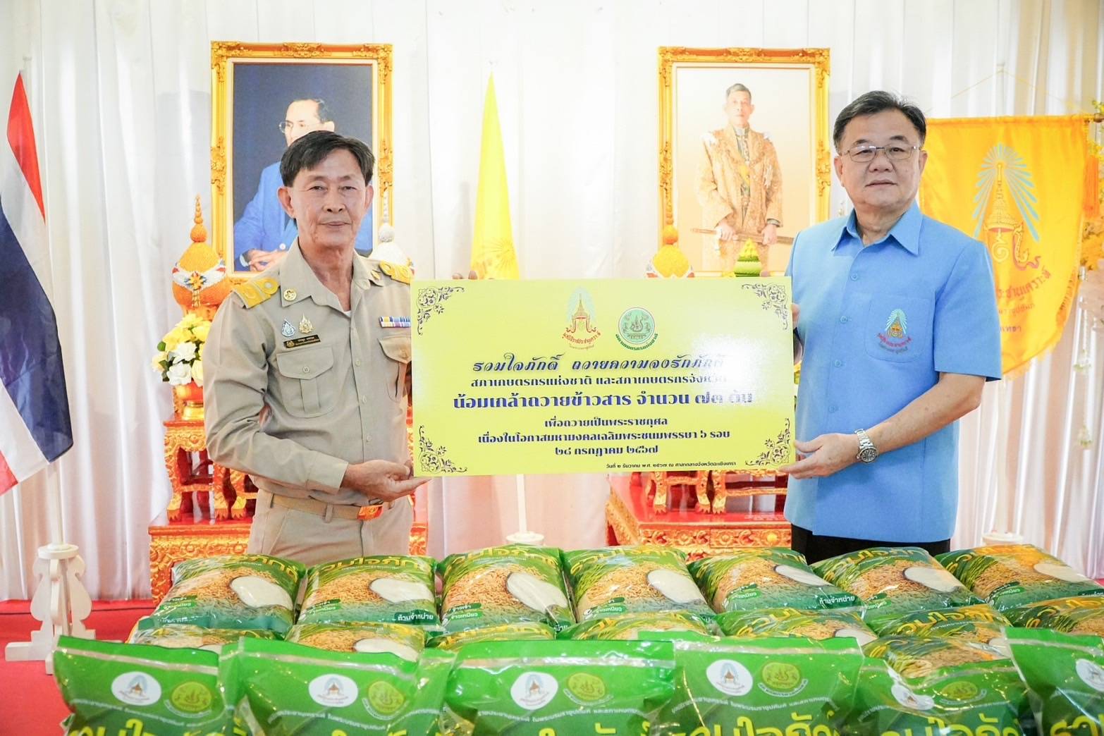 ในโครงการนี้ ข้าวสารจำนวน 73 ตัน ซึ่งเป็นผลผลิตจากน้ำพระทัยและพระราชปณิธานด้านการเกษตรของในหลวง