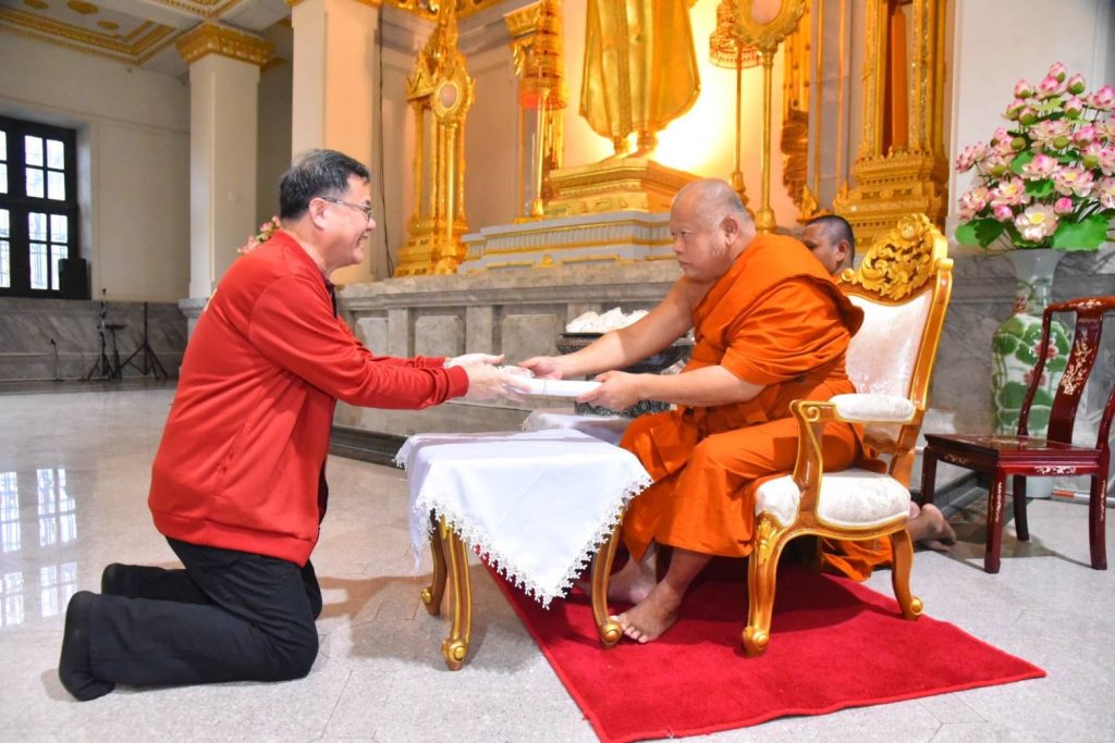 วันพุธที่ 4 ธันวาคม 2567 พระเทพภาวนาวชิรคุณ วิ. เจ้าอาวาสวัดโสธรวราราม วรวิหาร เจ้าคณะจังหวัดฉะเชิงเทรา และนายขจรเกียรติ รักพานิชมณี ผู้ว่าราชการจังหวัดฉะเชิงเทรา พร้อมด้วยนายวุฒิพงศ์ ฉายแสง นายกสมาคมกีฬาแห่งจังหวัดฉะเชิงเทรา นายสันติ นุนาบี ผู้อำนวยการสำนักงาน กกท. จังหวัดฉะเชิงเทรา นางปวีณวรรณ นิลกำแหง ท่องเที่ยวและกีฬาจังหวัดฉะเชิงเทรา นางสาวบุบผา หิมพานต์ ผู้อำนวยการสำนักงานพระพุทธศาสนาจังหวัดฉะเชิงเทรา คณะผู้บริหารจังหวัดฉะเชิงเทรา ส่วนราขการ นักกีฬา เจ้าหน้าที่ และผู้เกี่ยวข้อง เข้าร่วมในพิธีรับโอวาทธรรมจาก พระเทพภาวนาวชิรคุณ วิ. เจ้าอาวาสวัดโสธรวรารามวรวิหาร และรับโอวาทจาก นายขจรเกียรติ รักพานิชมณี ผู้ว่าราชการจังหวัดฉะเชิงเทราให้แก่คณะนักกีฬาและเจ้าหน้าที่จังหวัดฉะเชิงเทรา ในการแข่งขันกีฬาแห่งชาติ ครั้งที่ 49 “จันท์เกมส์” และการแข่งขันกีฬาคนพิการแห่งชาติ ครั้งที่ 39 “อัญมณีเกมส์” ณ หอพระไตรปิฎก พระอุโบสถวัดโสธรวราราม วรวิหาร จังหวัดฉะเชิงเทรา