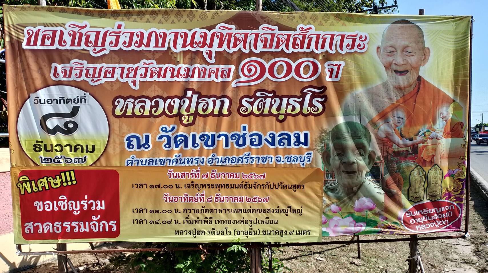 พระครูปลัดวัณณวัฒน์ (อาจารย์สัมพันธ์) เจ้าอาวาสวัดเขาช่องลม ตำบลเขาคันทรง อำเภอศรีราชา เปิดเผยว่าทางวัดเตรียมจัดงานเททองหล่อรูปเหมือนยืนหลวงปู่ฮกสูง 9 เมตร ฉลองอายุวัฒนมงคล100ปีหลวงปู่ฮกซึ่ง เป็นวาระที่2 ทางหลวงปู่ฮกได้อนุญาติเป็นกรณีพิเศษให้สร้างขึ้นและนำประดิษฐานไว้ที่วัดเขาช่องลม ให้ประชาชนได้มากราบไหว้บูชาขอพรโดยจะมีการเททองเป็นวาระที่2 ในวันที่ 8 ธันวาคม2567นี้โดยมีพระเกจิอาจารย์ชื่อดังมานั่งปรก นำโดยหลวงปู่ฮก วัดราษฏร์เรืองสุข(วัดมาบลำบิด)มาร่วมพิธีในครั้งนี้ โดยจะเริ่มงานตั้งแต่วันที่7ธันวาคม 2567 เวลา 17.00น.เจริญพระพุทธมนต์ธัมจักรกัปปวัตนสูตร ขอเชิญพุทธศาสนิกชนร่วมสวดมนต์ธัมจักรฯกัน และในวันที่8 ธันวาคม 2567 เวลา11.00น.ถวายภัตราหารเพลแด่คณะสงฆ์หมู่ใหญ่ที่ศาลา เวลา14.09น.เริ่มทำพิธีเททองหล่อรูปเหมือนหลวงปู่ฮก รตินธโร(อายุยืน)ความสูง9เมตร