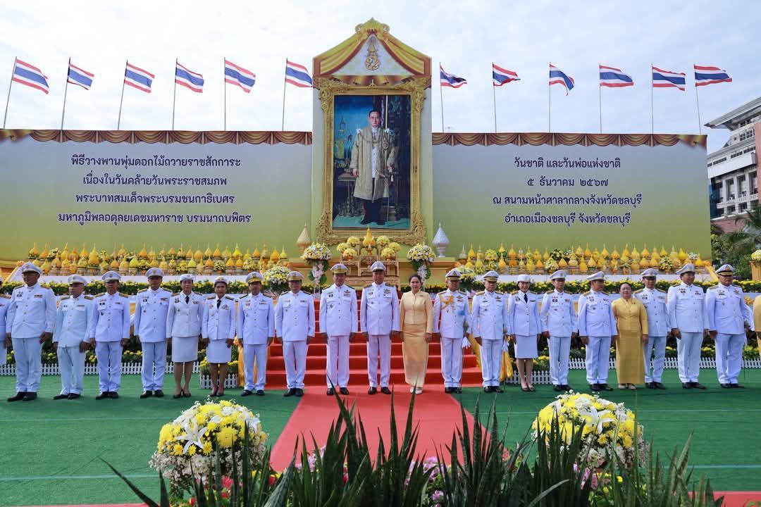 นายธวัชชัย ศรีทอง ผู้ว่าราชการจังหวัดชลบุรี เป็นประธานในพิธีวางพานพุ่มดอกไม้ถวายราชสักการะเบื้องหน้าพระบรมฉายาลักษณ์พระบาทสมเด็จพระบรมชนกาธิเบศร มหาภูมิพลอดุลยเดชมหาราช บรมนาถบพิตรโดยมีนางสาวประภัสรา ศรีทอง นายกเหล่ากาชาติจังหวัดชลบุรี นางสาวฐิติลักษณ์ คำพา ,นายอำนาจ เจริญศรี นายชัยพร แพภิรมย์รัตน์ , นายธนนท์ พรรพีภาสรองผู้ว่าราชการจังหวัดชลบุรีพร้อมด้วยหัวหน้าศาลทหาร ตำรวจ หัวหน้าส่วนราชการเข้าร่วมพิธีณ สนามหน้าศาลากลางจังหวัดชลบุรี อำเภอเมืองชลบุรี จังหวัดชลบุรี
