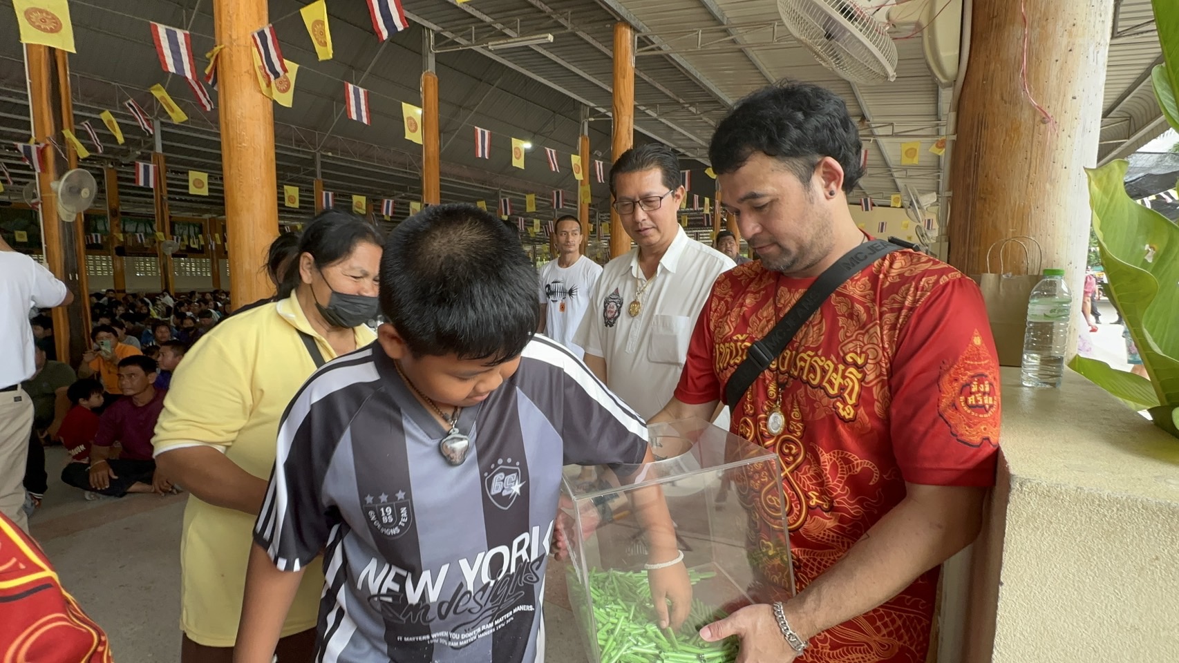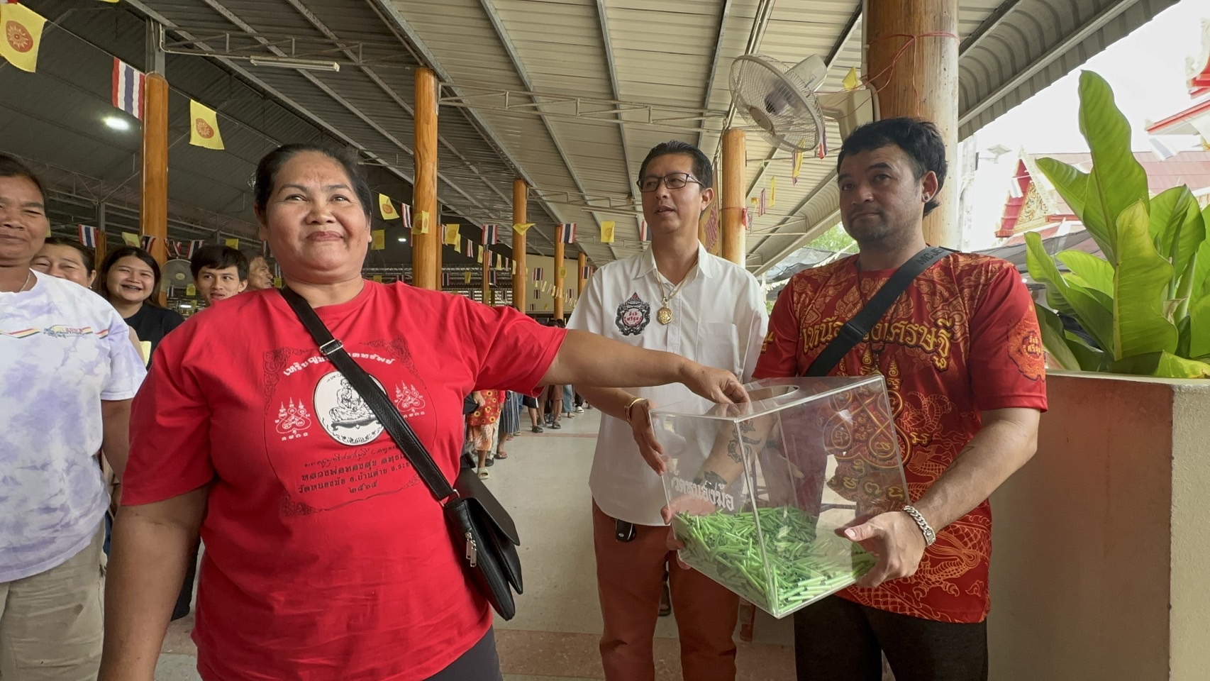 เมื่อเวลา 08.00 น.วันที่ 8 ธ.ค.67 ผู้สื่อข่าวรายงานว่า นายนิพนธ์ เสียงจันทน์ ประธานจัดสร้างวัตถุมงคลหลวงปู่ทองสุข เจ้าอาวาสวัดหนองฆ้อ ต.หนองบัว อ.บ้านค่าย จ.ระยอง คณะกรรมการวัด และเพจโซเชียลระยอง ได้เปิดให้มีการจับสลากใบจองลุ้นเหรียญวัตถุมงคลพระครูพุทธิศาสต์มุนี หรือ หลวงปู่ทองสุข ลทธเมโธ เจ้าอาวาสวัดหนองฆ้อ รุ่นเลื่อนสมณศักดิ์ เนื่องในโอกาสที่ระลึกงานวางศิลาฤกษ์สร้างศาลาการเปรียญ อาทิ เนื้อเงินหน้ากากทองคำ, อัลปาก้า และพระพุทธชินราช, โดยมีศิษยานุศิษย์ และประชาชนจากทั่วสารทิศที่ศรัทธาในตัวหลวงปู่ทองสุข แห่เข้าคิวจับสลากลุ้นเหรียญวัตถุมงคลแต่ละเนื้ออย่างล้นหลาม โดยได้มีการจัดสร้างเหรียญวัตถุมงคลดังกล่าวจำนวนจำกัด เพื่อหารายได้สมทบทุนสร้างศาลาการเปรียญ ซึ่งอยู่ในระหว่างการก่อสร้าง โดยเปิดให้ศิษยานุศิษย์และประชาชนได้จับสลากลุ้นเหรียญฯ เพียง 800 คนเท่านั้น ซึ่งมีบรรดาเซียนพระมาดักรอ ขอซื้อใบจองดังกล่าวจำนวนมาก