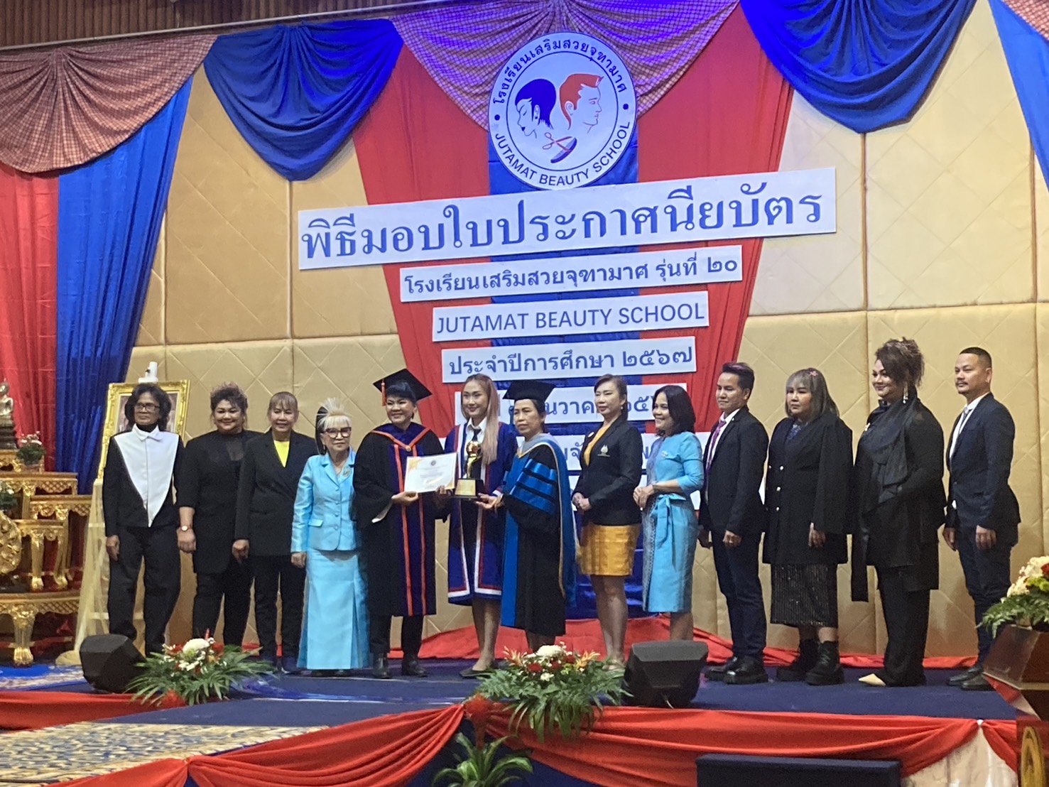 วันที่ 9 ธ.ค.67 ที่โรงแรมไดอาน่าการ์เด้นท์รีสอร์ทพัทยา จ.ชลบุรี ดร.ลลิดา ธรรมบุตร ผู้อำนวยการ กลุ่มนิเทศ ติดตามและประเมินผล สำนักงานศึกษาธิการจังหวัดชลบุรี ร่วมเป็นเกียรติในพิธีมอบประกาศนียบัตรผู้สำเร็จการศึกษาของโรงเรียนเสริมสวยจุฑามาศประจำปี 2567 รุ่นที่20 มีผู้สำเร็จการศึกษาจำนวน 28 คน
