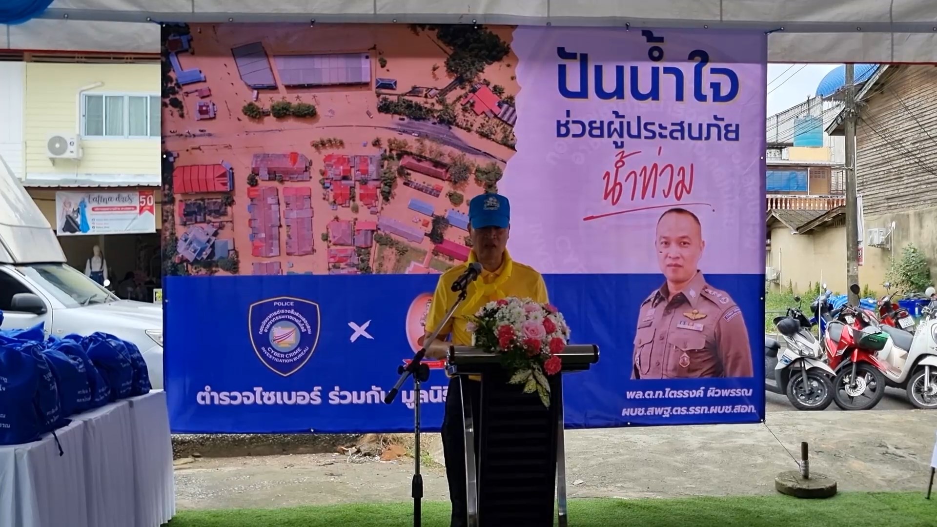 วันที่ 14 ธ.ค. 2567 ผู้สื่อข่าวรายงานว่า ที่ตลาดพ่อพรหม อ.หาดใหญ่ จ.สงขลา พล.ต.ท.ไตรรงค์ ผิวพรรณ รักษาราชการแทนผู้บัญชาการตำรวจสืบสวนสอบสวนอาชญากรรมทางเทคโนโลยี(สอท.)ร่วมกับมูลนิธิพระราหู นำทีมตำรวจไซเบอร์ ตำรวจภูธรจ.สงขลาตำรวจสภ.หาดใหญ่ ลงพื้นที่แจกถุงยังชีพให้กับชาวบ้านและครอบครับตำรวจที่เดือดร้อนจากเหตุการณ์น้ำท่วมในพื้นที่หาดใหญ่ใน อ.หาดใหญ่ จ.สงขลา ตามโครงการใจถึงใจ เพื่อบรรเทาความเดือดร้อนให้กับชาวบ้าน พร้อมๆ กับให้ความรู้ชาวบ้านและการป้องกันในเรื่องของการหลอกลวงทางออนไลน์ทุกรูปแบบเช่นแกงค์คอลเซ็นเตอร์และการซื้อขายทางออนไลน์ เพื่อให้ชาวบ้านได้รู้เท่าทันเลห์กลไม่ตกเป็นเหยื่อของโจรออนไลน์