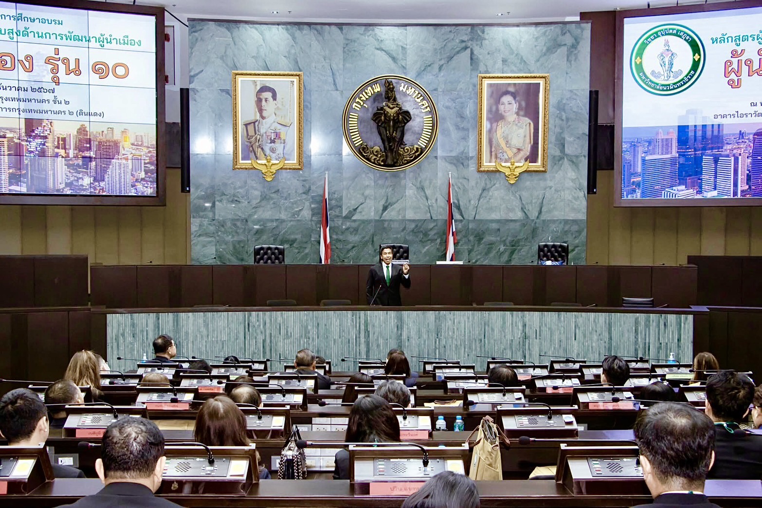 วันที่ 13 ธันวาคม 2567 ที่ห้องประชุมสภา กทม.(ดินแดน) ชั้น 2 อาคารไอราวัตพัฒนา ศาลาว่าการกรุงเทพมหานคร เขตดินแดง มหาวิทยาลัยนวมินทราธิราช จัดพิธีเปิดการอบรมหลักสูตรผู้บริหารระดับสูงด้านการพัฒนาผู้นำเมือง (ผู้นำเมือง รุ่น 10) โดยได้รับเกียรติจาก นายชัชชาติ สิทธิพันธุ์ ผู้ว่าราชการกรุงเทพมหานคร เป็นประธานกล่าวเปิดงาน และ ศ.สุรพล นิติไกรพจน์ นายกสภามหาวิทยาลัยนวมินทราธิราช กล่าวต้อนรับผู้เข้ารับการศึกษาอบรม โดยมี รศ.พงษ์ศักดิ์ น้อยพยัคฆ์ รองอธิการบดีมหาวิทยาลัยฯเป็นผู้กล่าวรายงาน พร้อมด้วย ผู้เข้ารับการศึกษาอบรม คณะผู้บริหารมหาวิทยาลัย และศิษย์เก่า (ผู้นำเมืองรุ่น 9)