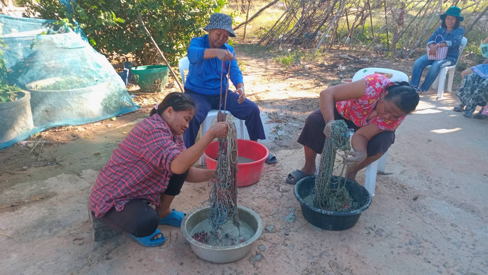 วันที่ 18 ธันวาคม 2567 ผู้สื่อข่าวประจำรายงานว่า ที่หมู่บ้านสุขสบาย หมู่ที่ 20 ตำบลกระเทียม อำเภอสังขะ จังหวัดสุรินทร์ ชาวบ้านได้รวมตัวกันหลังจากที่เก็บเกี่ยวข้าวเสร็จเรียบร้อยแล้ว ได้มาช่วยมัดหมี่และจัดเตรียมอุปกรณ์ต่างๆที่ใช้สำหรับการย้อมสีผ้าไหม ซึ่งของที่ใช้ในการย้อมสีผ้าไหมนั้นเป็นวัสดุจากธรรมชาติล้วนๆ และเป็นของที่หาได้ในป่าชุมชนใกล้หมู่บ้าน อาทิเช่น แก่นขนุน ใบยูคาฯ เปลือกสมอ ลูกสมอ ขมิ้น รากยอ เปลือกต้นมะพูด หมากสง เปลือกไม้นมแมว รากและใบของต้นคราม เป็นต้น