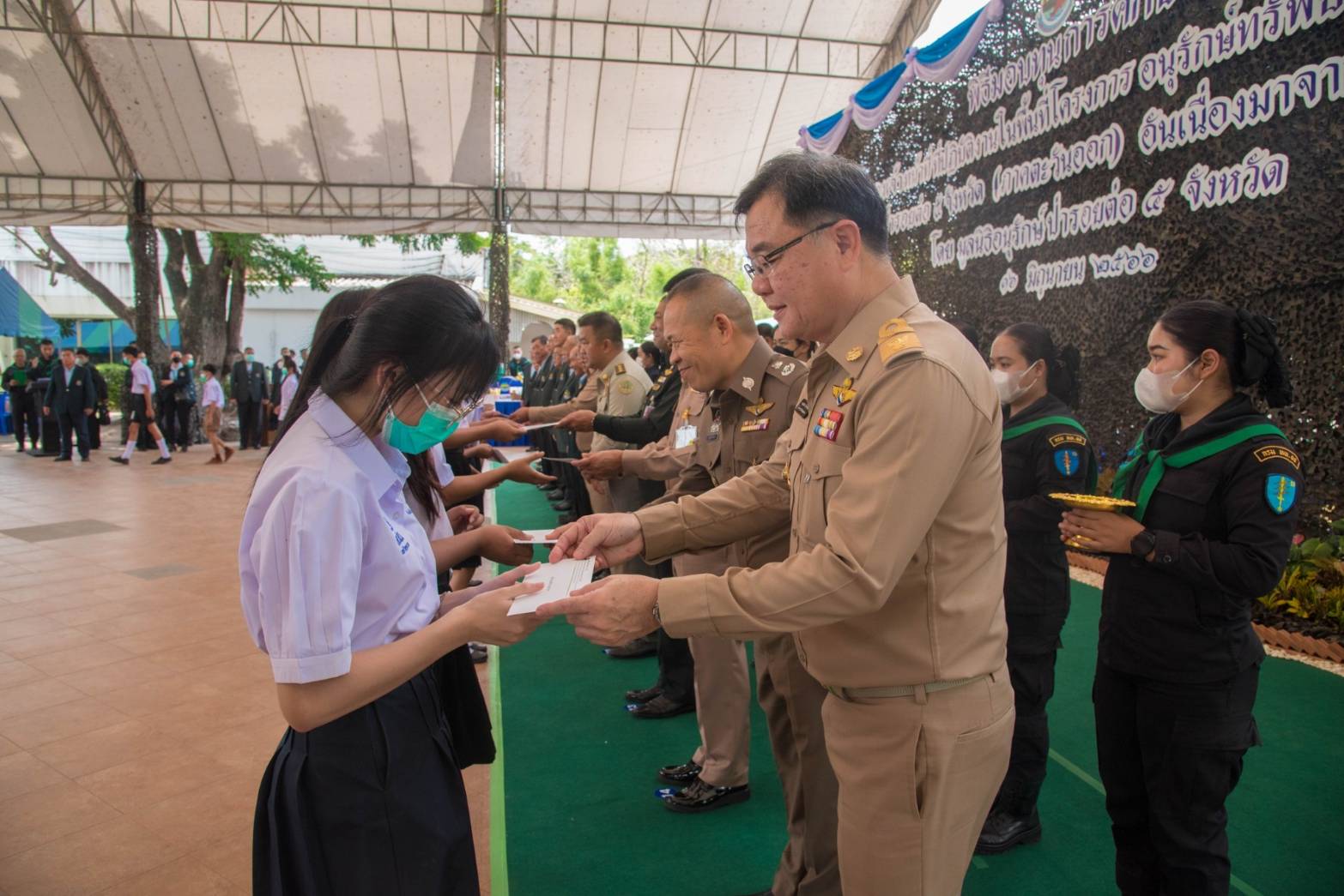วันนี้ 16 มิถุนายน 2566 ที่ สำนักงานพัฒนาภาค 1 หน่วยบัญชาการทหารพัฒนา อำเภอพนมสารคาม จังหวัดฉะเชิงเทรา พล.อ.ประวิตร วงษ์สุวรรณ รองนายกรัฐมนตรี ในฐานะประธานกรรมการมูลนิธิอนุรักษ์ป่ารอยต่อ 5 จังหวัด เป็นประธานในพิธีมอบทุนการศึกษา ให้กับบุตร-ธิดาของเจ้าหน้าที่ผู้ปฏิบัติงาน ในพื้นที่ป่ารอยต่อ 5 จังหวัด ประจำปี พ.ศ.2566 พร้อมด้วย นายขจรเกียรติ รักพานิชมณี ผู้ว่าราชการจังหวัดฉะเชิงเทรา พลเอก สุรัตน์ วรรักษ์ เลขานุการมูลนิธิ อนุรักษ์ป่ารอยต่อ 5 จังหวัด หัวหน้าส่วนราชการ เจ้าหน้าที่มูลนิธิอนุรักษ์ป่ารอยต่อ 5 จังหวัด นักเรียน และประชาชน เข้าร่วมพิธี