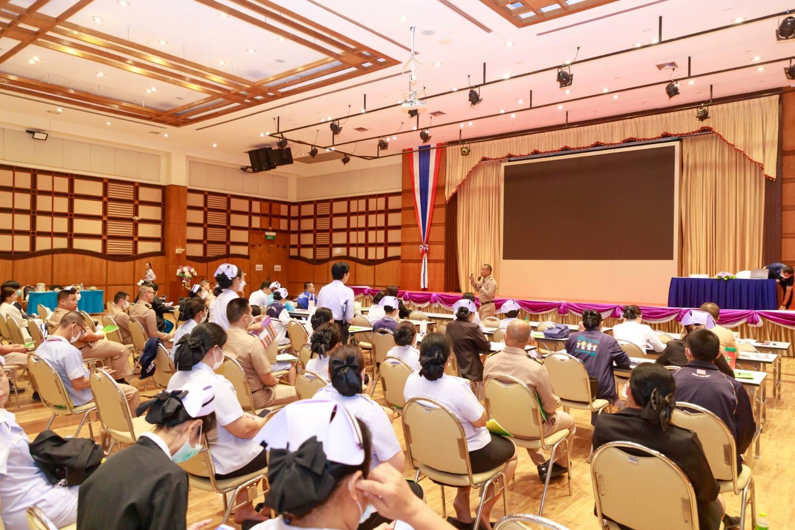 พลเรือตรี พัฒนชัย เฉลิมวรรณ์ ผอ.รพ.สมเด็จพระนางเจ้าสิริกิติ์ กรมแพทย์ทหารเรือ เป็นประธานเปิด โครงการอบรมเชิงปฏิบัติการ ตามแผนปฏิบัติการตอบสนองต่อภาวฉุกเฉิน กรณีเกิดเหตุกราดยิง (Active Shooting) ตามนโยบายผู้บัญชาการทหารเรือ ในปี 2668 “เทิดทูนสถาบัน ป้องกันรัฐ พัฒนาชาติราษฎร์ศรัทธา” และกำหนดให้เป็นปีแห่งความปลอดภัยของ กองทัพเรือ หรือ “NAVY – SAFETY 2025” สอดคล้องกับแผนยุทธศาสตร์ที่ 1 ของโรงพยาบาลสมเด็จพระนางเจ้าสิริกิติ์ฯ “เตรียมความพร้อมภารกิจฉุกเฉิน มีแผนตอบโต้สาธารณภัยและภัยพิบัติ”
