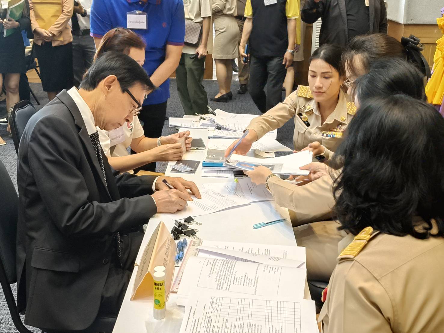 ดร.ป้องปราการ โสธรเทวาพิทักษ์ ผู้อำนวยการการเลือกตั้งประจำจังหวัดฉะเชิงเทรา นายธนกฤต รัตนพันธ์ ท้องถิ่นจังหวัดฉะเชิงเทรา กรรมการการเลือกตั้งประจำองค์การบริหารส่วนจังหวัดฉะเชิงเทรา และสื่อมวลชน