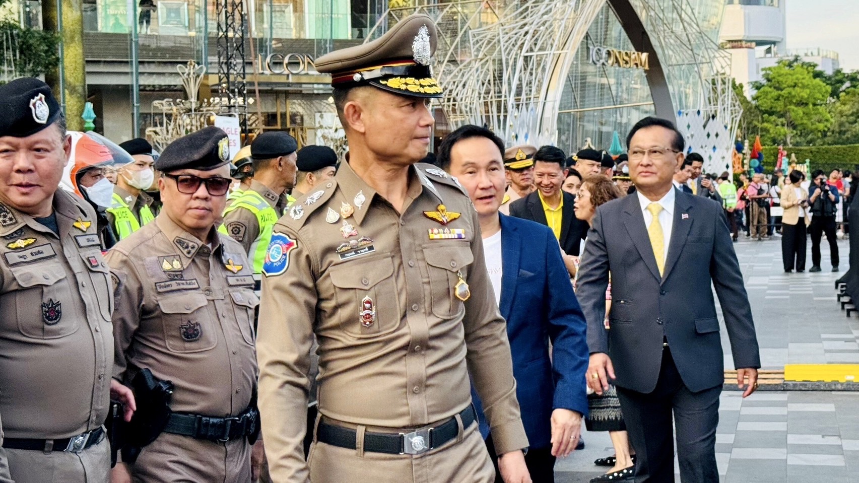 โดยมี พล.ต.ต.กฤษณ์ วาฤทธิ์ รองผู้บัญชาการตำรวจท่องเที่ยว และนาย ณัฐ ครุฑ สูตร ผู้แทนกระทรวงท่องเที่ยวและกีฬา และผู้อำนวยการ ฝ่ายกิจกรรมการท่องเที่ยวแห่ง ประเทศไทย พล.ต.ต.อังกูร คล้ายคลึง ประธานคณะอนุกรรมาธิการคงามปลอดภัยด้านการทีองเที่ยวและการกีฬา วุฒิสภา พล.ร.ท.ธันยกร เสนาลักษณ์ เจ้ากรมกิจการพลเรือนทหารเรือ พล.ต.ต.จรูญเกียรติ ปานแก้ว รองผู้บัญชาการตำรวจสอบสวนกลาง พล.ต.ต.ภานพ วรธนัชชากุล ผู้บังคับการตำรวจนครบาล 8 รศ.ทวิดา กมลเวชช รองผู้ว่าราชการกรุงเทพมหานคร นายพิทักษ์ วัฒนพงศ์พิศาล ผู้อำนวยการสำนักความปลอดภัยและสิ่งแวดล้อมทางน้ำ กรมเจ้าท่า คณะผู้บริหารไอคอนสยาม ร่วมกันปล่อยแถวกำลังพลปฏิบัติการด้านความปลอดภัย โดยมีหน่วยงานที่เกี่ยวข้อง อาทิ กองบังคับการตำรวจน้ำ สำนักงานเขตคลองสาน สถานีตำรวจนครบาลปากคลองสาน สถานีดับเพลิง กู้ภัยปากคลองสาน และคณะอนุกรรมาธิการคงามปลอดภัยด้านการทีองเที่ยวและการกีฬา วุฒิสภา ร่วมในพิธี