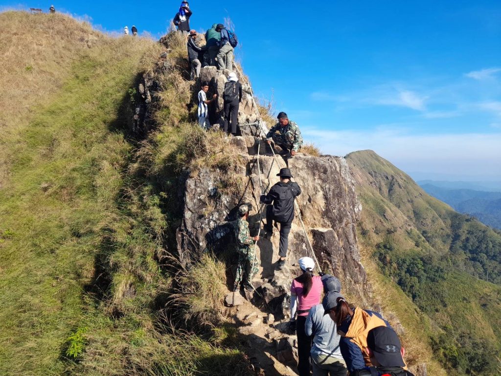 วันที่ 25 ธค.2567 นายชุติเดช กมนณชนุตม์ ผู้อำนวยการสำนักบริหารพื้นที่อนุรักษ์ที่ 3 เปิดเผยว่า ได้รับรายงานจากนายยุทธพงศ์ ดำศรีสุข หน.อช.ทองผาภูมิ อ.ทองผาภูมิ จ.กาญจนบุรี ว่ามีนักท่องเที่ยวจำนวนมาก เดินทางมุ่งหน้าเข้าชมธรรมชาติ ที่อช.ทองผาภูมิ มียอดจองเต็มทุกวัน โดยนายยุทธพงค์ ดำศรีสุข นักวิชาการป่าไม้ชำนาญการพิเศษ หัวหน้าอุทยานแห่งชาติทองผาภูมิ เปิดเผยว่า ปัจจุบันได้มีนักท่องเที่ยวเข้ามาท่องเที่ยวในพื้นที่อุทยานแห่งชาติทองผาภูมิ เพิ่มมากขึ้น โดยเฉพาะช่วงใกล้ปีใหม่ ซึ่งมีวันหยุดยาวหลายวัน เฉลี่ยวันละ 300-800 คนต่อวัน ซึ่งแหล่งท่องเที่ยวที่ได้รับความนิยมตอนนี้ คือ การจองเข้าร่วมกิจกรรมเดินศึกษาธรรมชาติระยะไกลเขาช้างเผือก รองลงมาคือ เยี่ยมชมน้ำตกจ๊อกกระดิ่น และลานกางเต็นท์เนินกูดดอย สำหรับเส้นทางศึกษาธรรมชาติระยะไกลเขาช้างเผือก ตั้งอยู่บริเวณบ้านอีต่อง หมู่ที่ 1 ตำบลปิล๊อก อำเภอทองผาภูมิ จังหวัดกาญจนบุรี มีระยะทาง 8 กิโลเมตร ผู้เข้าร่วมกิจกรรมจะใช้เวลา 2 วัน 1 คืน ซึ่งจะเปิดให้นักท่องเที่ยวได้เข้าสัมผัสความสวยงามของธรรมชาติอันบริสุทธิ์เหนือผืนป่าตะวันตก เฉพาะในช่วงเดือนพฤศจิกายน-มกราคม ของทุกปีเท่านั้น โดยสถานที่แห่งนี้ถือว่าเป็นแหล่งท่องเที่ยวที่นับว่าได้รับความนิยมและจองได้ยากสุดก็ว่าได้ ด้วยเป็นเส้นทางที่ไม่ไกลจากกรุงเทพฯ เดินทางได้ง่าย และความสวยงามของทัศนียภาพของผืนป่าที่อุดมสมบูรณ์ ความสวยงามของทิวเขาสุดสายตาติดชายแดนพม่า เหนือเขื่อนวชิราลงกรณ ซึ่งไฮไลท์ของเส้นทางนี้ คือ สันคมมีด สันเขาที่แคบและท้าท้ายจิตใจผู้ท่องเที่ยวธรรมชาติภายใต้วิว 360 องศา หนึ่งเดียวในโลก ซึ่งเป็นเส้นทางที่วิวดีที่สุดก่อนเข้าสู่เส้นทางระยะสุดท้ายขึ้นสู่ยอดเขาช้างเผือก และมีเจ้าหน้าที่ดูแลความปลอดภัยอย่างใกล้ชิด โดยจุดสูงสุดของเส้นทางนี้อยู่ที่ยอดเขาช้างเผือกที่ระดับความสูงจากระดับน้ำทะล 1,249 เมตร ซึ่งสามารถชมวิวได้ 360 องศา และระหว่างทางเป็นจุดชมพระอาทิตย์ที่สวยงามแห่งหนึ่ง