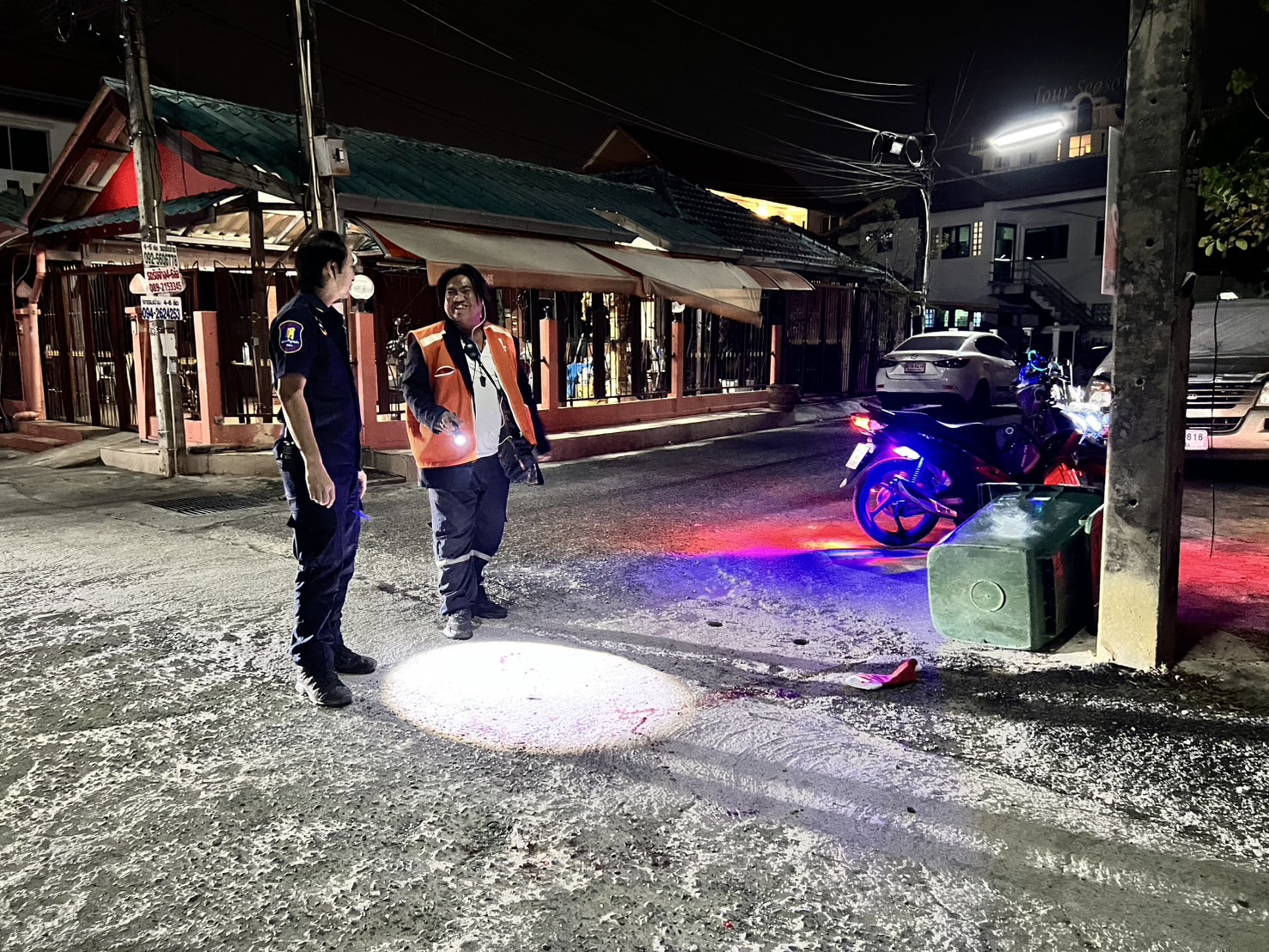 สอบถามน.ส.ภรณ์ทิพย์ จ่าเมือง อายุ 38 ปี คนดูแลผู้บาดเจ็บ ให้ข้อมูลกับเจ้าหน้าที่ตำรวจว่า ผู้บาดเจ็บนั้นกลับจากเที่ยวสถานบันเทิงในเมืองพัทยา ซึ่งมีการจัดงานวันคริสต์มาส ขณะที่กำลังเดินกลับบ้านพักมาถึงบริเวณด้านหน้าหมู่บ้าน ได้มีรถจักรยานยนต์จำนวนสามคัน มีผู้ชายวัยรุ่นหกคน ขี่มาล้อม แล้วลงมาทำร้ายร่างกายโดยใช้อาวุธมีดฟันเข้าที่ศรีษะ ก่อนจะแย่งเอากระเป๋าเงินหลบหนีไป ทิ้งให้ผู้บาดเจ็บนอนจมกองเลือดอยู่ข้างทาง ก็จะตะเกียกตะกายเข้ามาขอความช่วยเหลือที่บ้าน ตนเองจึงโทรแจ้งเจ้าหน้าที่เข้าตรวจสอบดังกล่าว