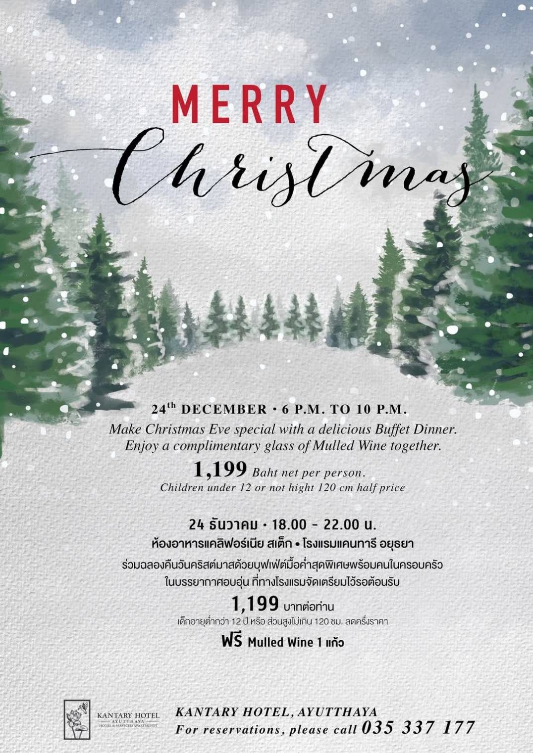ในวันที่ 24 ธันวาคม 2567 ณ ห้องอาหาร แคลิฟอร์เนีย สเต็ก โรงแรมแคนทารี อยุธยา มีนักท่องเที่ยวทั้งชาวไทย และต่างประเทศ มาร่วมเฉลิมฉลองเทศกาลวันคริสต์มาส กับบุฟเฟ่ต์มื้อค่ำสุดพิเศษกันอย่างคึกคัก และยังได้รับเกียรติจากท่านนิวัฒน์ รุ่งสาคร ผู้ว่าราชการจังหวัดพระนครศรีอยุธยา พร้อมด้วยนางวัชราภรณ์ รุ่งสาคร นายกเหล่ากาชาดจังหวัดพระนครศรีอยุธยา มาร่วมเฉลิมฉลองบุฟเฟ่ต์มื้อค่ำสุดพิเศษ เทศกาลวันคริสต์มาส ในครั้งนี้ด้วย