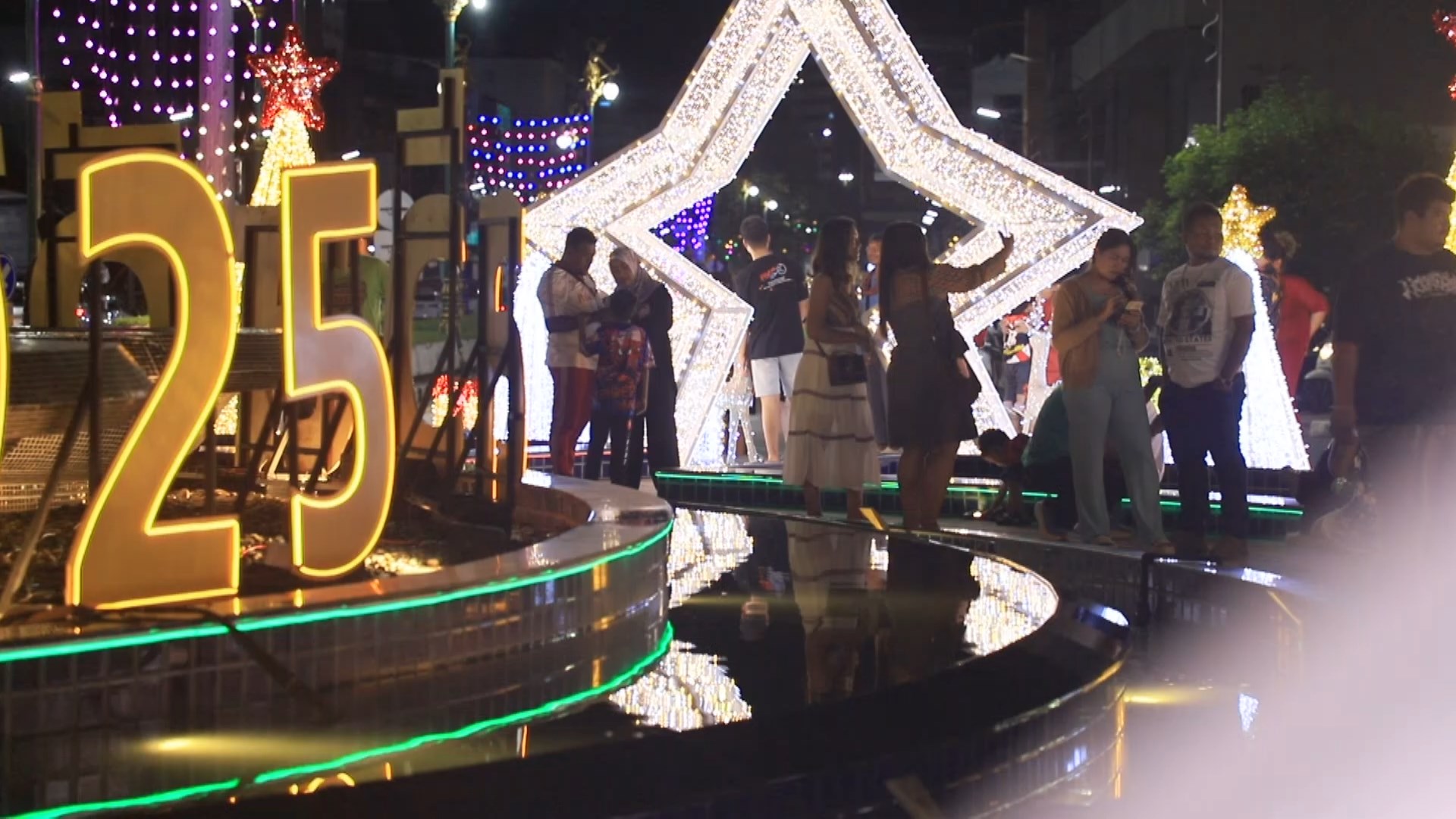 วันที่ 26 ธ.ค. 2567 ผู้สื่อข่าวรายงานว่าที่บริเวณวงเวียนน้ำพุ ใจกลางเมืองหาดใหญ่ ประชาชนและนักท่องเที่ยวต่างแห่ไปถ่ายรูปเช็คอินกันคึกคัก หลังเทศบาลนครหาดใหญ่เนรมิตเป็นจุดเช็คอินต้อนรับเทศกาลคริสต์มาสและเทศกาลปีใหม่ โดยปีนี้มีการประดับตกแต่งไฟเป็นรูปต่างๆ ด้วยสีสันสดใส และงดงาม ทั้งประตูรูปดาว กล่องของขวัญ ซานต้า กวางเรนเดียร์ ต้นคริสมาสต์ไฟ พร้อมกับคำว่าสวัสดีปีใหม่ 2568 และ HAPPY NEW YEAR 2025 ทำให้วงเวียนน้ำพุตอนนี้ กลายเป็นอีกหนึ่งแลนมาร์คสำคัญของปีนี้ ที่นักท่องเที่ยวและประชาชนต่างมาถ่ายรูปเพื่อเช็คอินกัน