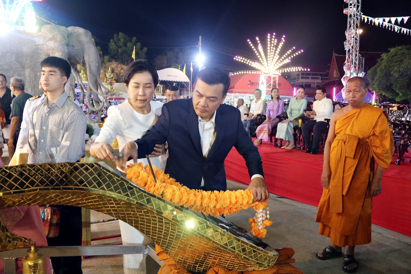 วันที่ 26 ธ.ค.67 เมื่อเวลา 18.09 น. ที่วัดสามัคคีบรรพต ต.บางเสร่ อ.สัตหีบ จ.ชลบุรี พระครูเกษมกิตติโสภณ เจ้าคณะตำบลพลูตาหลวง เจ้าอาวาส วัดสามัคคีบรรพต ประกอบพิธียกช่อฟ้าอุโบสถ จำนวน 2 ช่อ ซึ่งเป็นช่อเอก โดยมี พระเถรานุเถระ ชั้นผู้ใหญ่ พระสังฆาธิการ ตลอดจน คุณ กัมพล ตันสัจจา ประธานสวนนงนุชพัทยา คุณ จุมพล ใคร่ครวญ ผู้บริหารโครงการหมู่บ้านนาวีเฮาส์ พร้อมครอบครัว พุทธสนิกชน พ่อค้า แม่ค้า ประชาชน เข้าร่วมบุญใหญ่ ยกช่อฟ้าอุโบสถ กันเป็นจำนวนมาก และยังมี มหรสพสมโภช ให้ประชาชนได้รับชมกันอีกด้วย