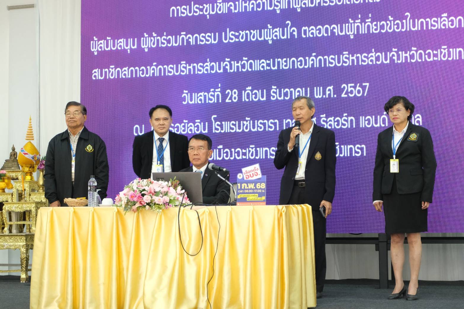 วันที่ 28 ธันวาคม 2567 เวลา 09.00 น.พลเอก จำนงค์ จันพร ผู้ตรวจการเลือกตั้งประจำจังหวัดฉะเชิงเทรา เป็นประธานเปิดการประชุมชี้แจงให้ความรู้แก่ผู้สมัครรับเลือกตั้งสมาชิกสภาองค์การบริหารส่วนจังหวัด และนายกองค์การบริหารส่วนจังหวัดฉะเชิงเทรา