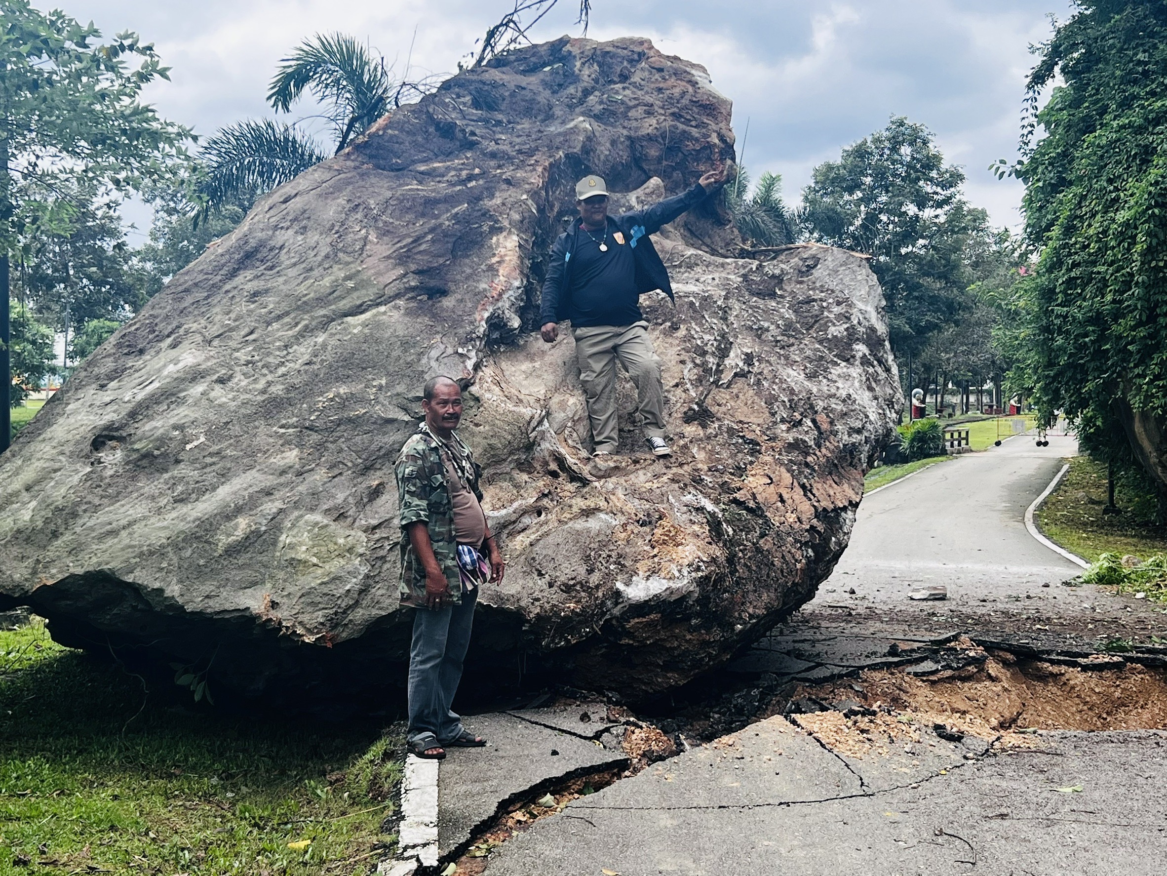 วันที่ 29 ธ.ค. 2567 ผู้สื่อข่าวได้เดินทางไปยังวัดราชบุรณะหรือวัดนอก (พระอารามหลวง) เลขที่ 2 หมู่ 2 ตำบลท่ามะพลา อ.หลังสวน จ.ชุมพร หลังได้รับแจ้งว่าเกิดเหตุหินขนาดใหญ่สไลด์ลงจากภูเขาภายในวัดทำให้ถนนทรุดตัวทำให้รถสัญจรผ่านไม่ได้และปิดกันเป็นเขตอันตรายแล้ว