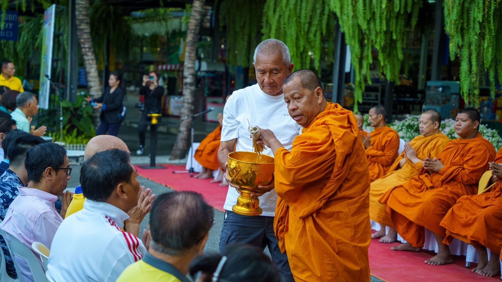 วันที่ 1 มกราคม 2568 เวลา 07.00 น. นายกัมพล ตันสัจจา ประธานสวนนงนุชพัทยา นางสาวนันทนา ตันสัจจา กรรมการบริหาร พร้อมคณะผู้บริหาร พนักงาน นักท่องเที่ยว และช้างแสนรู้ จำนวน 9 เชือก ร่วมกันทำบุญตักบาตร ตามขนบธรรมเนียมประเพณีเนื่องในโอกาสวันขึ้นปีใหม่ประจำปี 2568