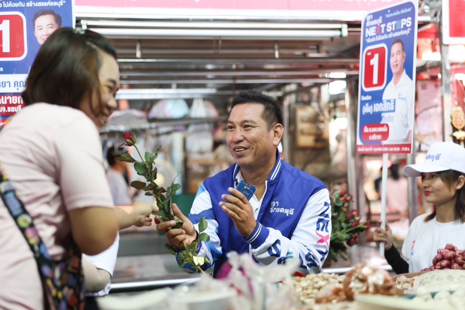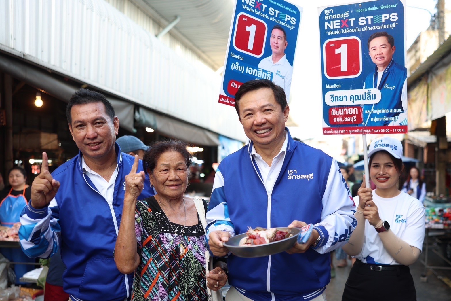 เมื่อเวลา 09.00 วันที่ 5 มกราคม 2568 ผู้สื่อข่าว รายงานว่า นายวิทยา คุณปลื้ม ผู้สมัคร นายก อบจ. ชลบุรี เบอร์ 1 และ นายเอกสิทธิ์ อ่ำฉอ้อน ผู้สมัคร ส.อบจ.ชลบุรี (ศรีราชา) เขต.1 เบอร์ 1 พร้อมทีมงานได้ลงพื้นที่พบปะพูดคุยกับชาวบ้านพร้อมแจก ใบปลิวขอคะแนนเสียง บริเวณตลาดสดศรีราชา ต.ศรีราชา อ.ศรีราชา จ.ชลบุรี ต่อมาได้เดินเข้าพบปะพูดคุยกับพ่อค้าแม่ค้า ภายในตลาดสด