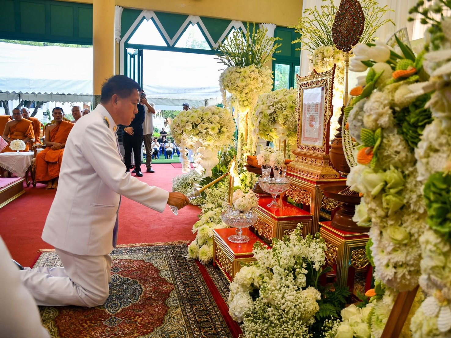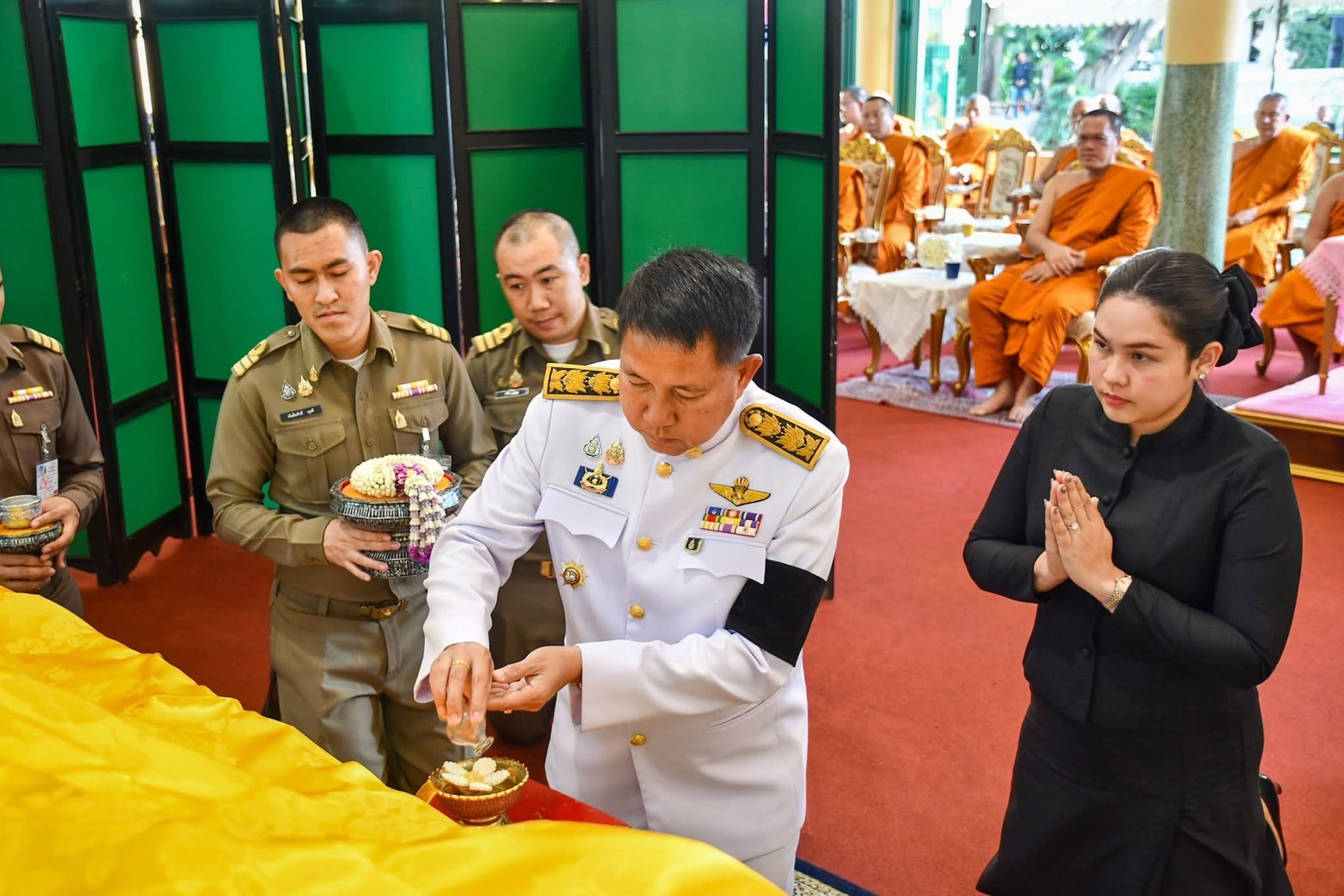 วันอาทิตย์ที่ 5 มกราคม 2568 เวลา 17.00 น. ณ ศาลาเมฆิยเถระ (ศาลาทำบุญ) วัดเขาบางทราย พระอารามหลวง ตำบลบางทราย อำเภอเมืองชลบุรี จังหวัดชลบุรี นายธวัชชัย ศรีทอง ผู้ว่าราชการจังหวัดชลบุรี ร่วมในพิธีพระราชทานน้ำหลวงสรงศพพระเทพสุทธาจารย์ (อนันต์ กลฺยาณวฑฺฒโน) อดีตเจ้าอาวาสวัดเขาบางทราย พระอารามหลวง อดีตที่ปรึกษาเจ้าคณะจังหวัดชลบุรี (ธรรมยุต) อดีตที่ปรึกษาเจ้าคณะภาค 12-13 (ธรรมยุต) และร่วมในพิธีบำเพ็ญกุศลทักษิณานุปทานอุทิศถวายกุศลแด่พระเดชพระคุณพระเทพสุทธาจารย์ (อนันต์ กลฺยาณวฑฺฒโน)