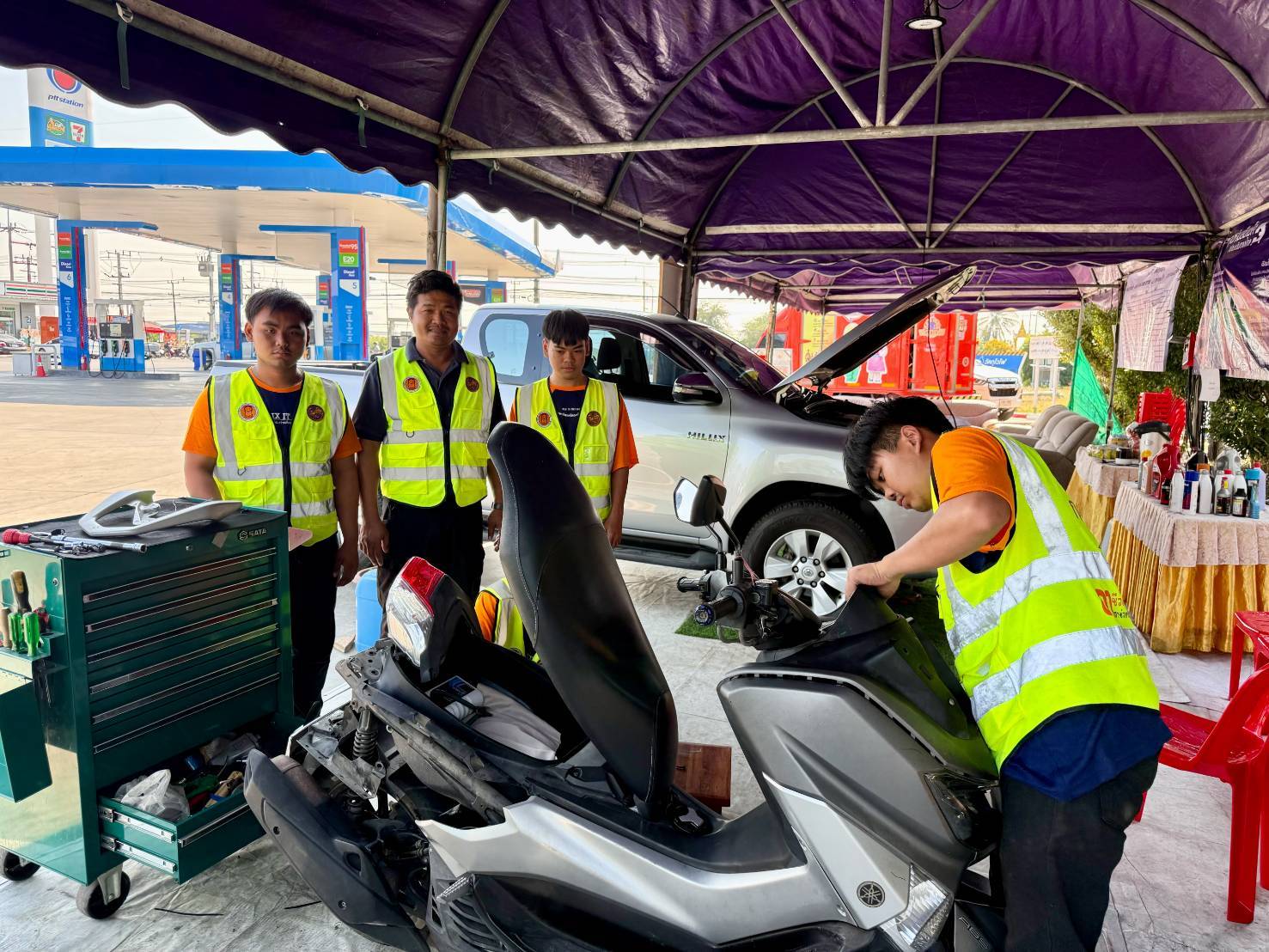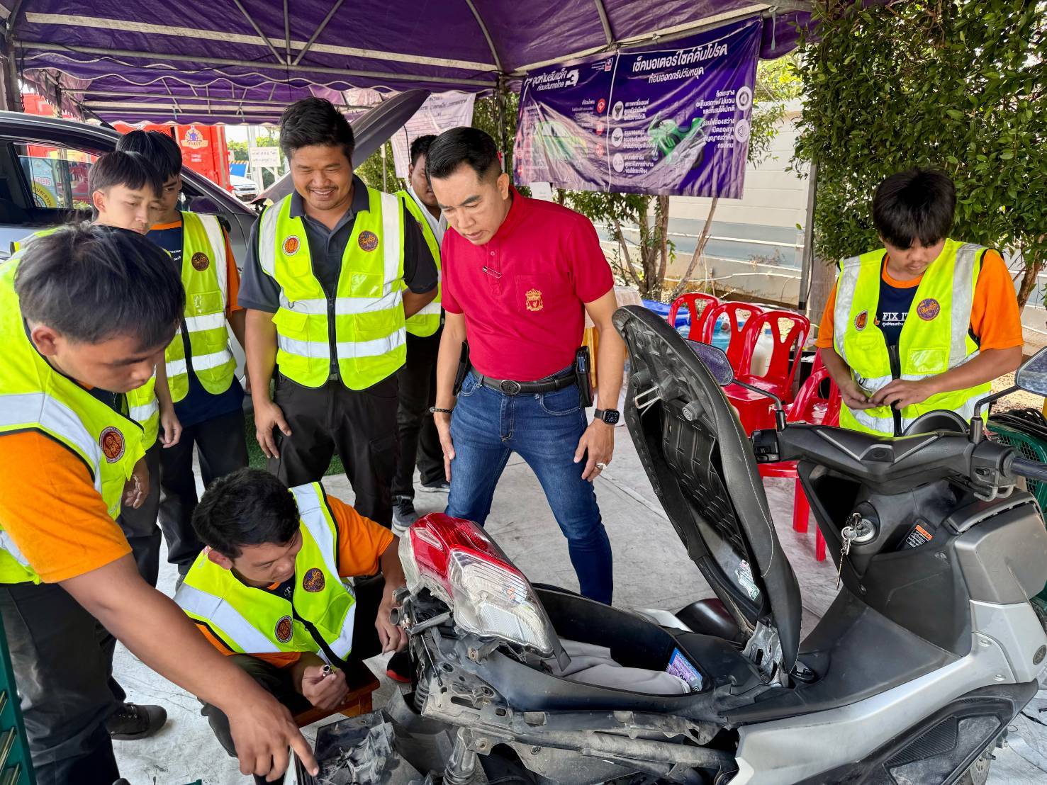 วันที่ 5 มกราคม 2567 ว่าที่พันตรี ดร.วัชรพล ลักษณลม้าย ผู้อำนวยการ(วิทยฐานะเชี่ยวชาญ) วิทยาลัยเทคนิคฉะเชิงเทรา – ผู้อำนวยการสำนักงานอาชีวศึกษาจังหวัดฉะเชิงเทรา – ปฎิบัติหน้าที่ ผู้อำนวยการศูนย์อาชีวศึกษาทวิภาคี สำนักงานคณะกรรมการการอาชีวศึกษา ได้รับมอบหมาย จากนายยศพล เวณุโกเศศ เลขาธิการคณะกรรมการการอาชีวศึกษา ให้ออกตรวจเยี่ยม และกำลังใจ พร้อมทั้งมอบสิ่งของให้คณะผู้บริหาร ครู และนักเรียน นักศึกษา วิทยาลัยเทคนิคฉะเชิงเทรา ที่ออกให้บริการเต็นท์อาชีวะ-ขนส่ง อาสาช่วยเหลือประชาชนเทศกาลปีใหม่ ๒๕๖๘ ณ สถานีบริการน้ำมัน ปตท. ห้างหุ้นส่วนจำกัดมหาศิริโภคา ตำบลคลองนครเนื่องเขต อำเภอเมืองฉะเชิงเทรา จังหวัดฉะเชิงเทรา ซึ่งการให้บริการวันนี้เป็นวันสุดท้าย แต่ยังมีพี่น้องประชาชน มาใช้บริการอย่างมาก