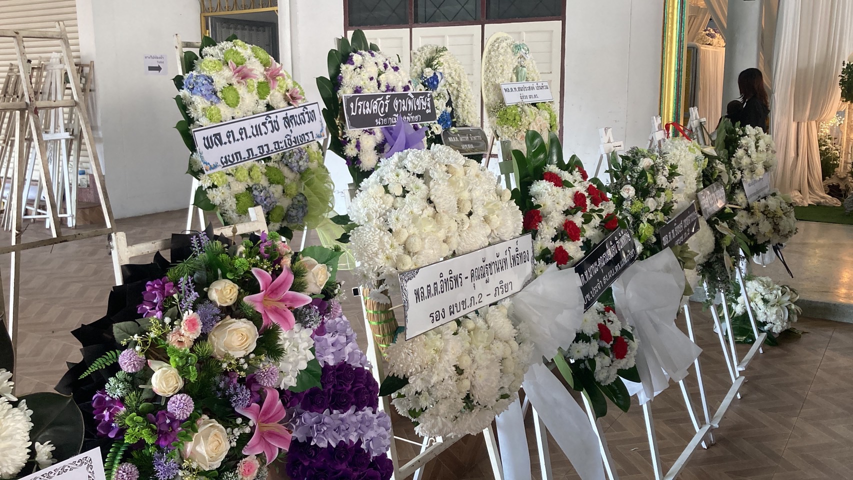 ภายในงานได้รับเกียรติจากแขกผู้มีเกียรติจำนวนมากทั้งกลุ่มข้าราชการตำรวจ กลุ่มการเมือง กลุ่มนักธุรกิจ กลุ่มสื่อมวลชน และญาติสนิทมิตร นำพวงหรีดเข้าร่วมแสดงความเสียกับทางเจ้าภาพที่สูญเสียผู้อันเป็นที่รักกันเป็นจำนวนมาก ก่อนช่วงค่ำจะมีพิธีสวดพระอภิธรรม